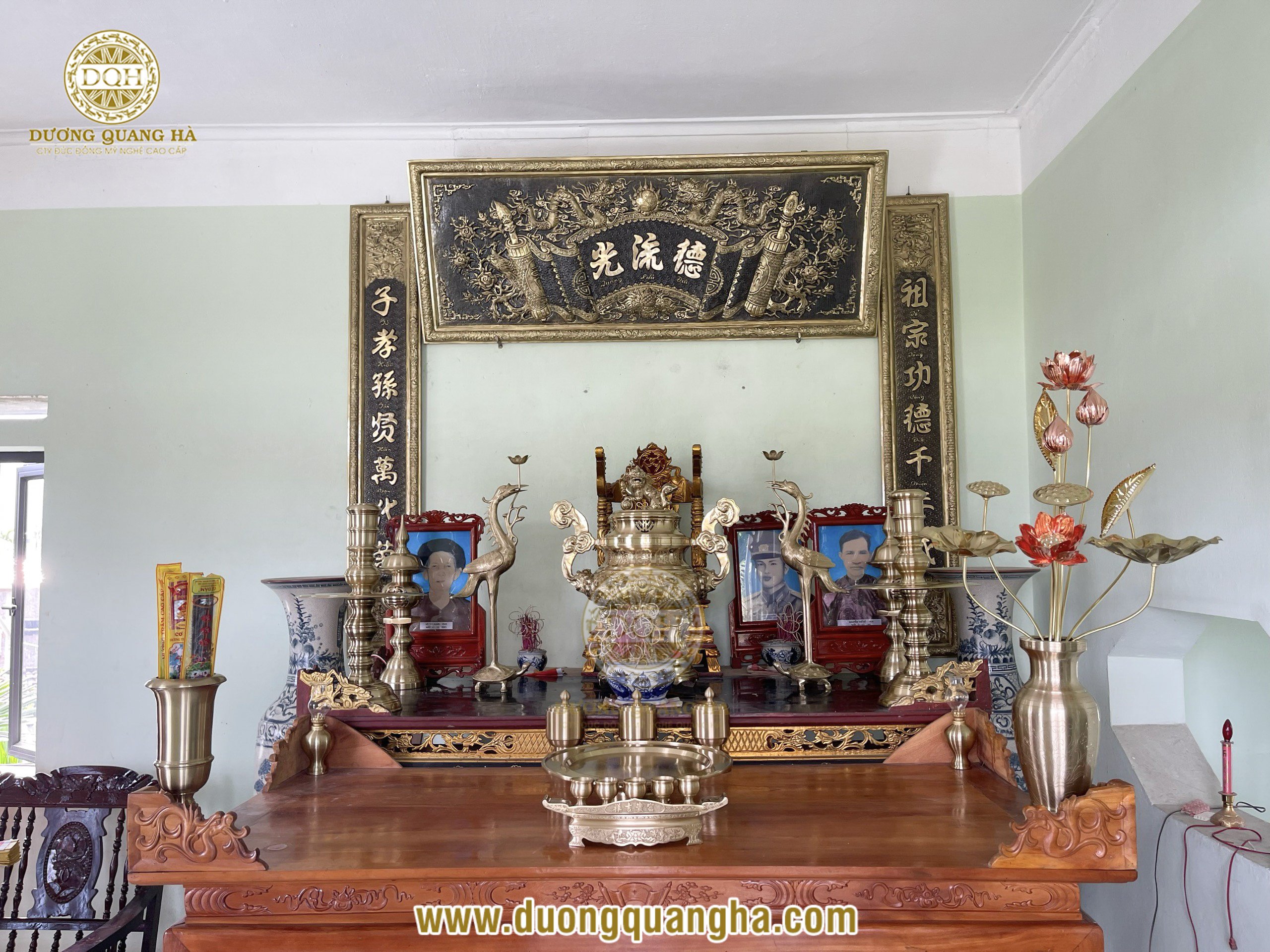 Các sản phẩm được chế tác tỉ mỉ, công phu bởi những nghệ nhân dày dặn kinh nghiệm, tài ba tại xưởng Đúc đồng Dương Quang Hà góp phần tôn vinh thêm vẻ trang nghiêm cho không gian thờ cúng.