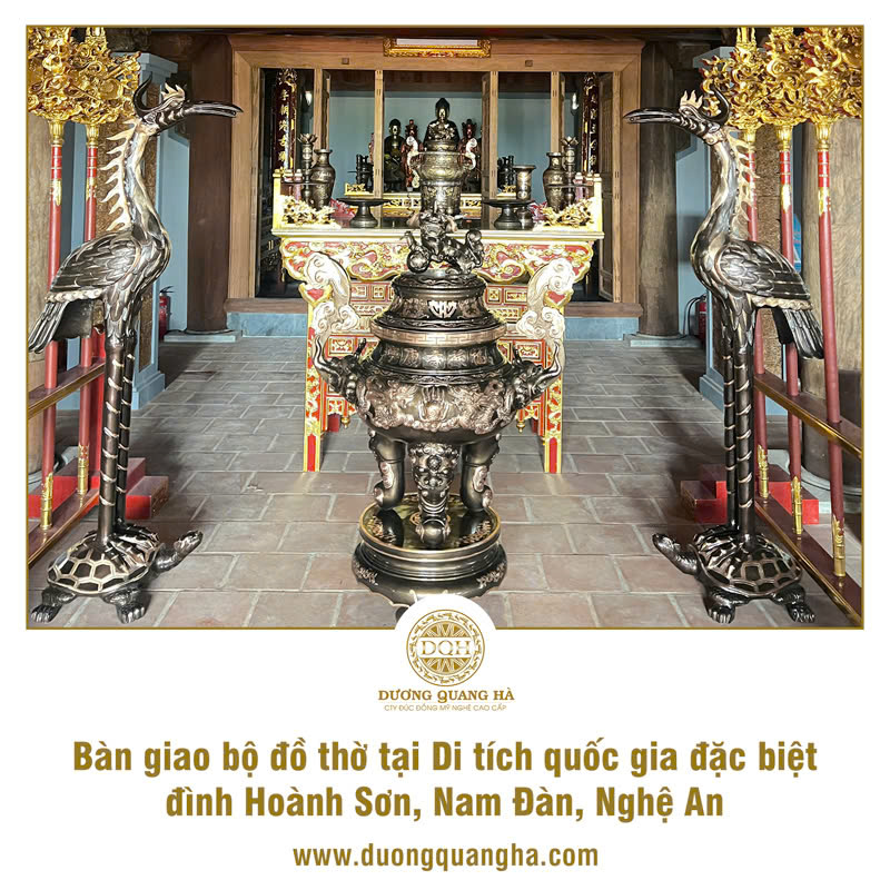 Trong dịp lễ Quốc khánh 2/9 vừa qua, đội ngũ Đúc đồng Dương Quang Hà đã vinh dự vận chuyển và lắp đặt thành công bộ đồ thờ bằng đồng đỏ cao cấp tại Di tích quốc gia đặc biệt Đình Hoành Sơn, Nam Đàn, Nghệ An.