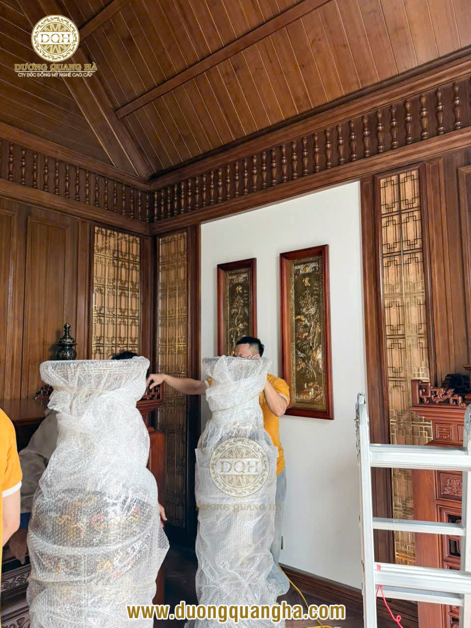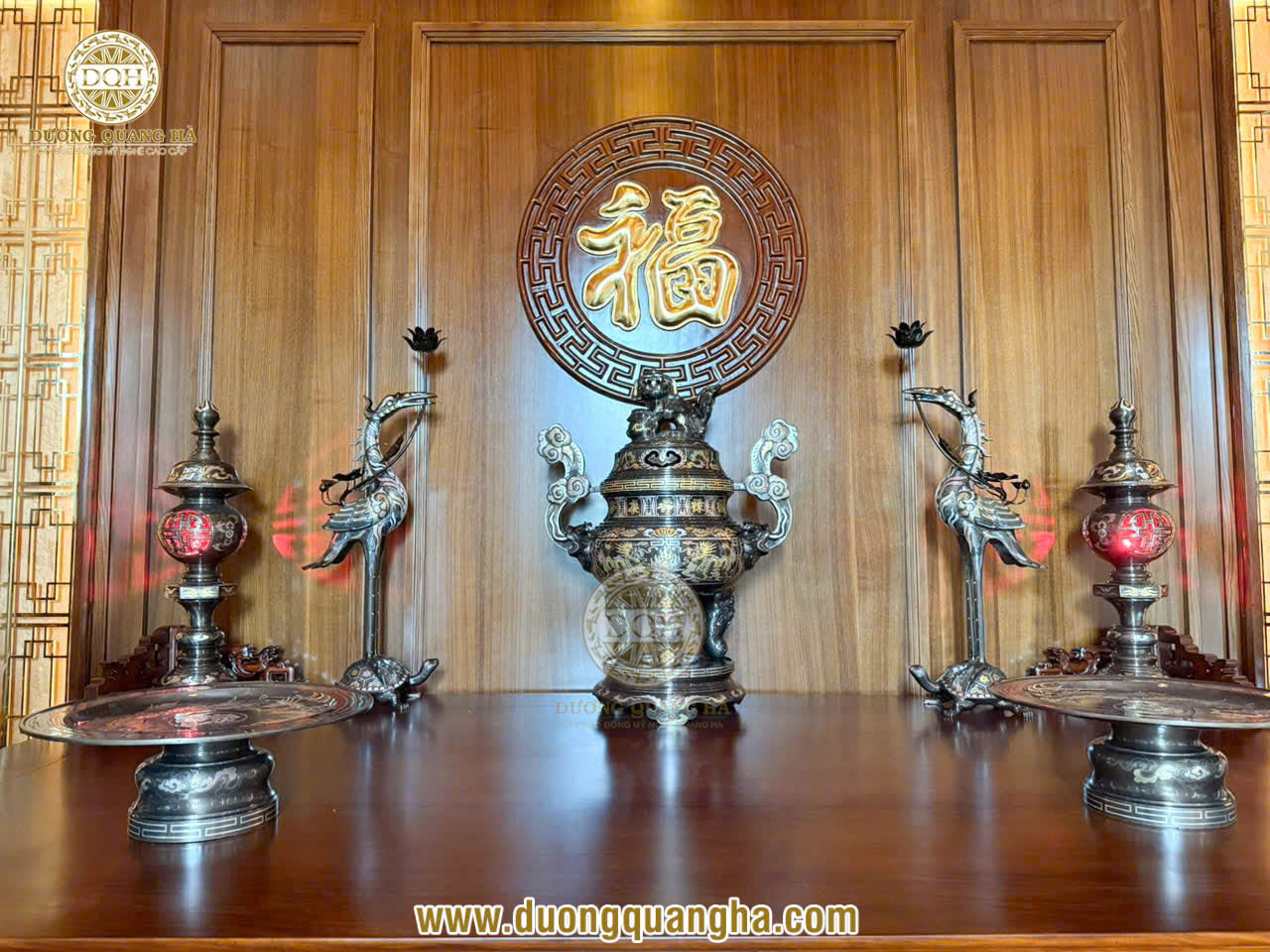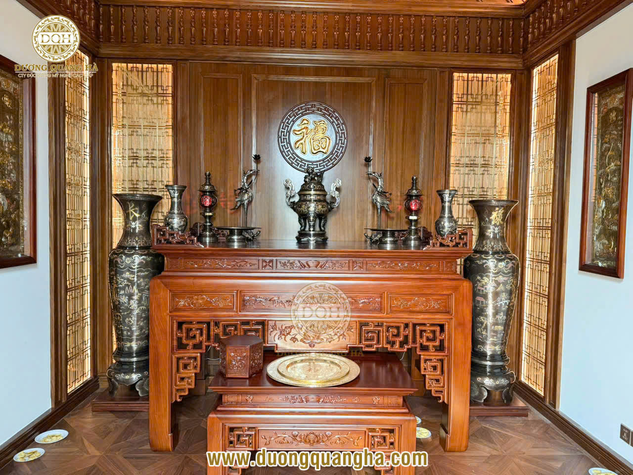 Mới đây, Đúc đồng Dương Quang Hà vừa bàn giao và lắp đặt thành công bộ đồ thờ khảm ngũ sắc, cặp lộc bình cao cấp và bức tranh tứ quý cho không gian thờ tại gia của khách hàng VIP ở Hà Nội.