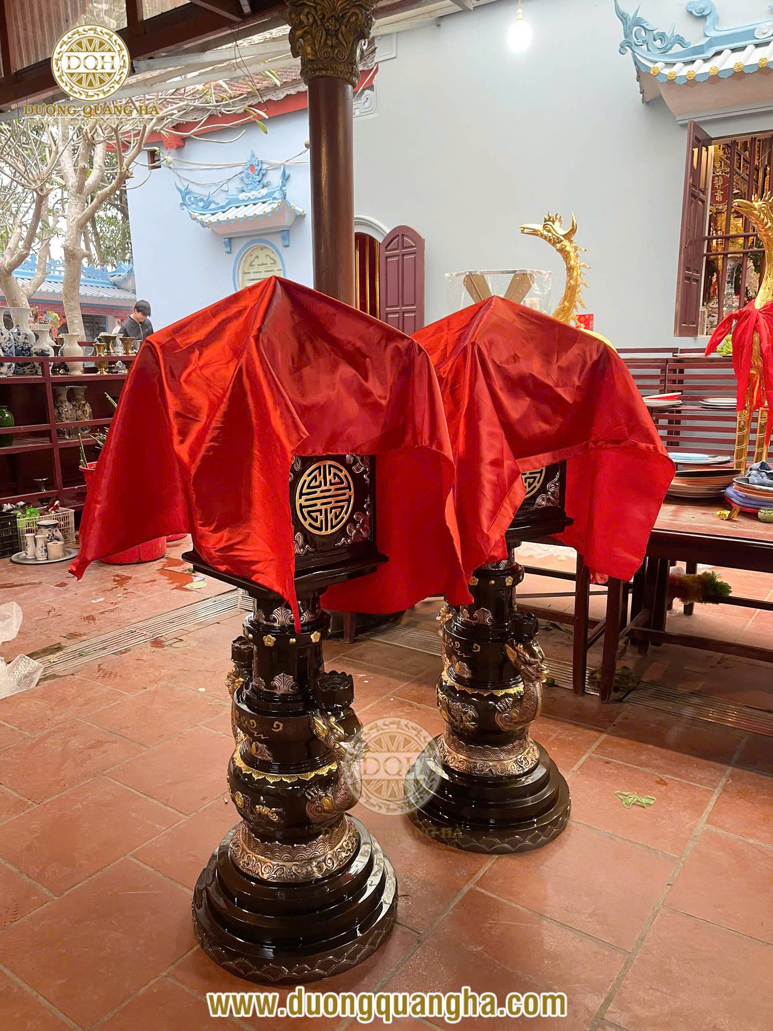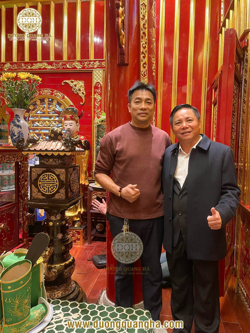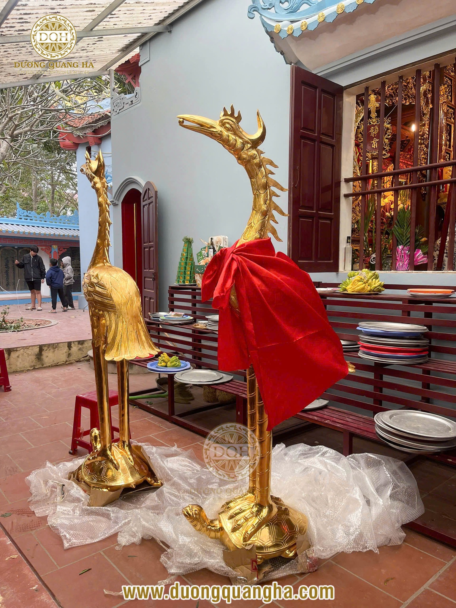 Hoan hỉ ngày lành, chiều hôm qua, đội ngũ Đúc đồng Dương Quang Hà đã có chuyến bàn giao đôi đèn thờ, đôi hạc và ấn rồng đặt trước cho ngôi đền này.