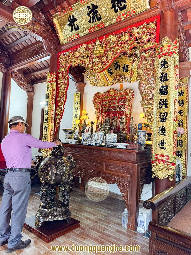 Đỉnh cầu đặc biệt phù hợp đặt tại từ đường, nhà thờ họ, phòng thờ gia tiên, giúp tôn bề thế không gian thờ tự và khẳng định nét đẹp văn hóa tâm linh của dòng tộc. Tổng thể khi hoàn thiện mang lại cảm giác uy nghi, rạng rỡ, góp phần giữ gìn và lan tỏa truyền thống “Uống nước nhớ nguồn”.