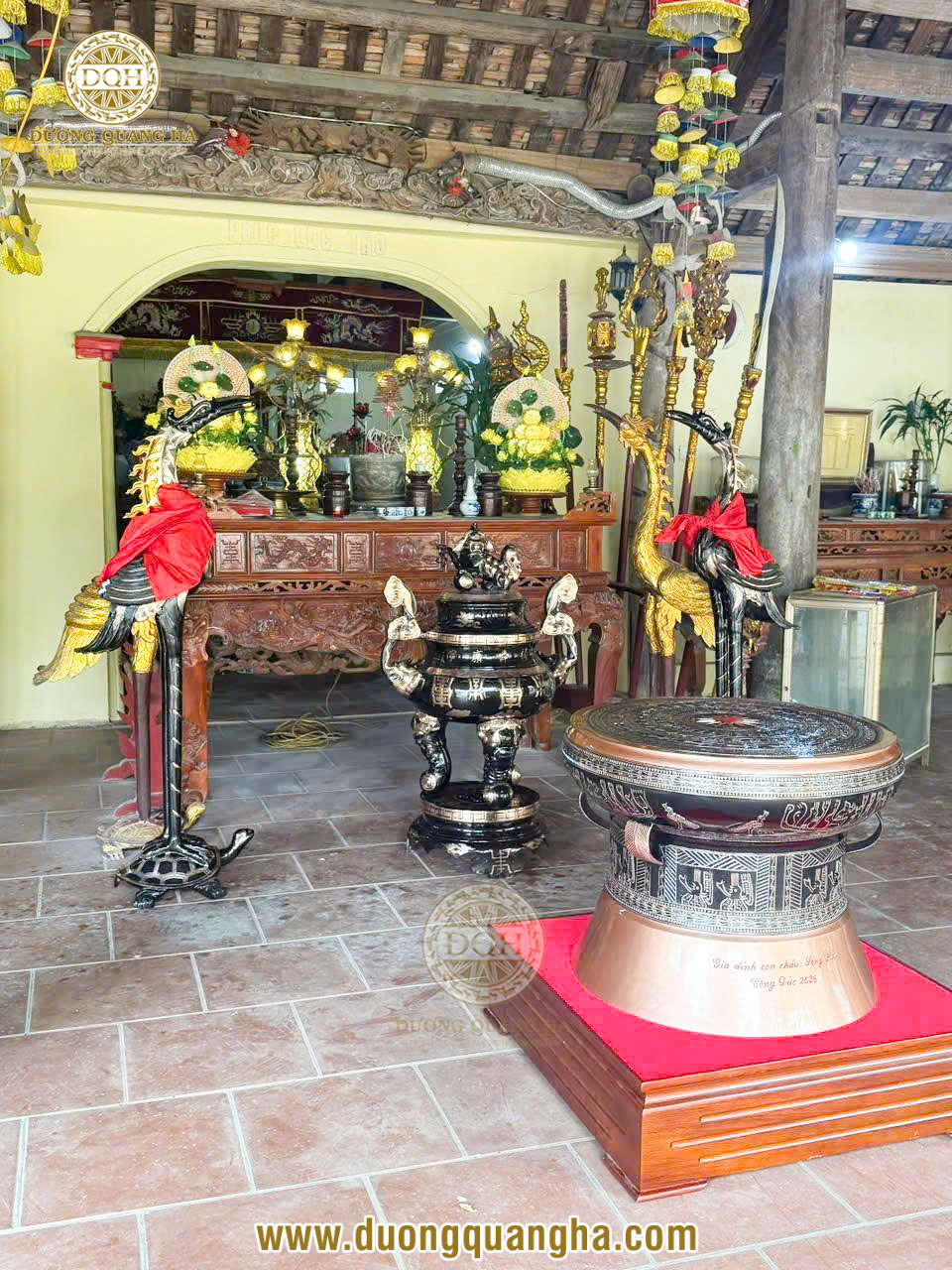 Không chỉ là vật phẩm thờ cúng, bộ sản phẩm còn góp phần tôn vinh giá trị tâm linh và nét đẹp văn hóa truyền thống, tạo điểm nhấn trang trọng cho không gian đình làng.