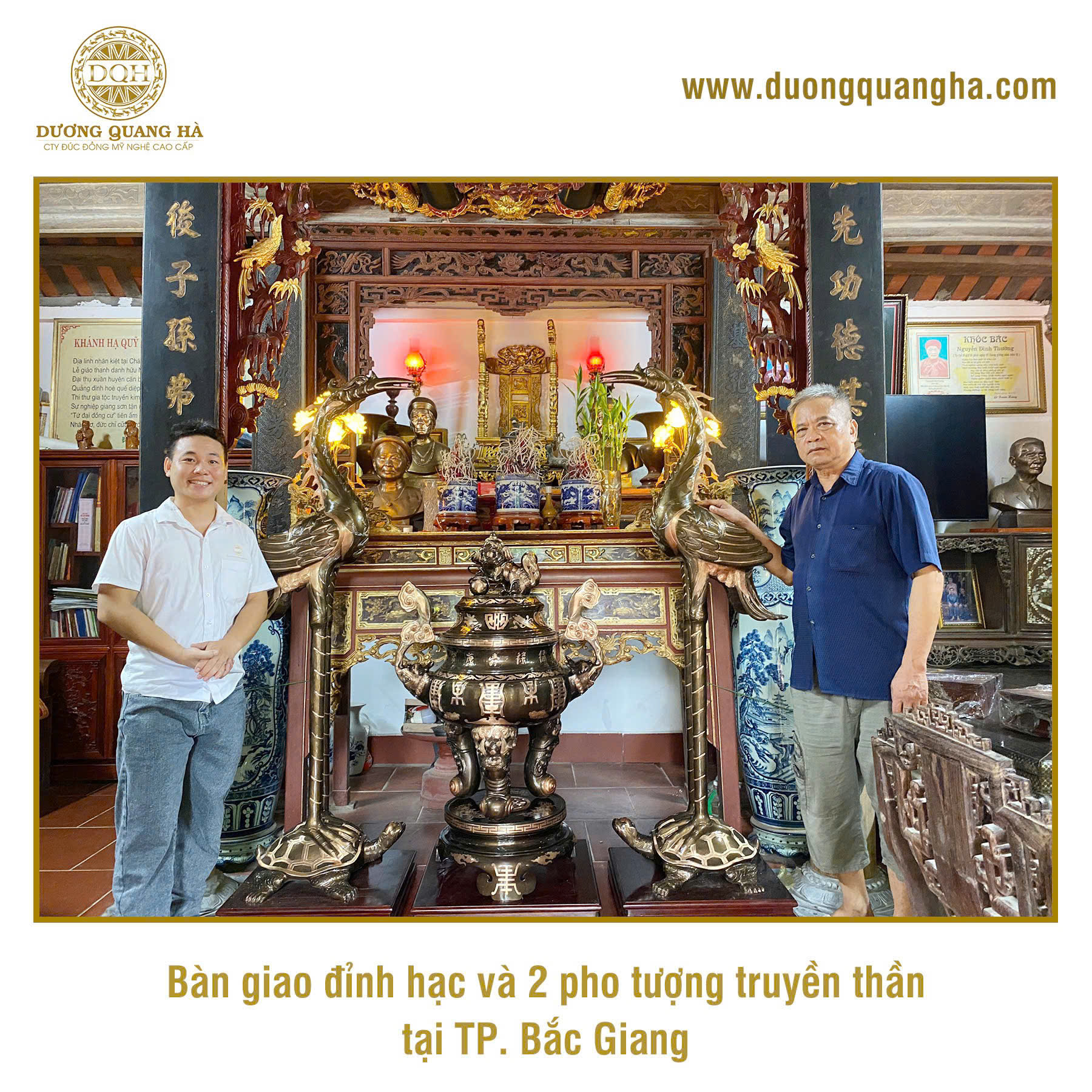 Trong không khí linh thiêng của mùa Vu Lan báo hiếu, vượt qua gần 130km, Đúc đồng Dương Quang Hà đã có mặt tại TP. Bắc Giang để tiếp tục bàn giao và lắp đặt đơn đặt hàng gồm 2 hạc đồng, 1 đỉnh đồng và 2 pho tượng truyền thần cụ ông, cụ bà cho khách hàng.