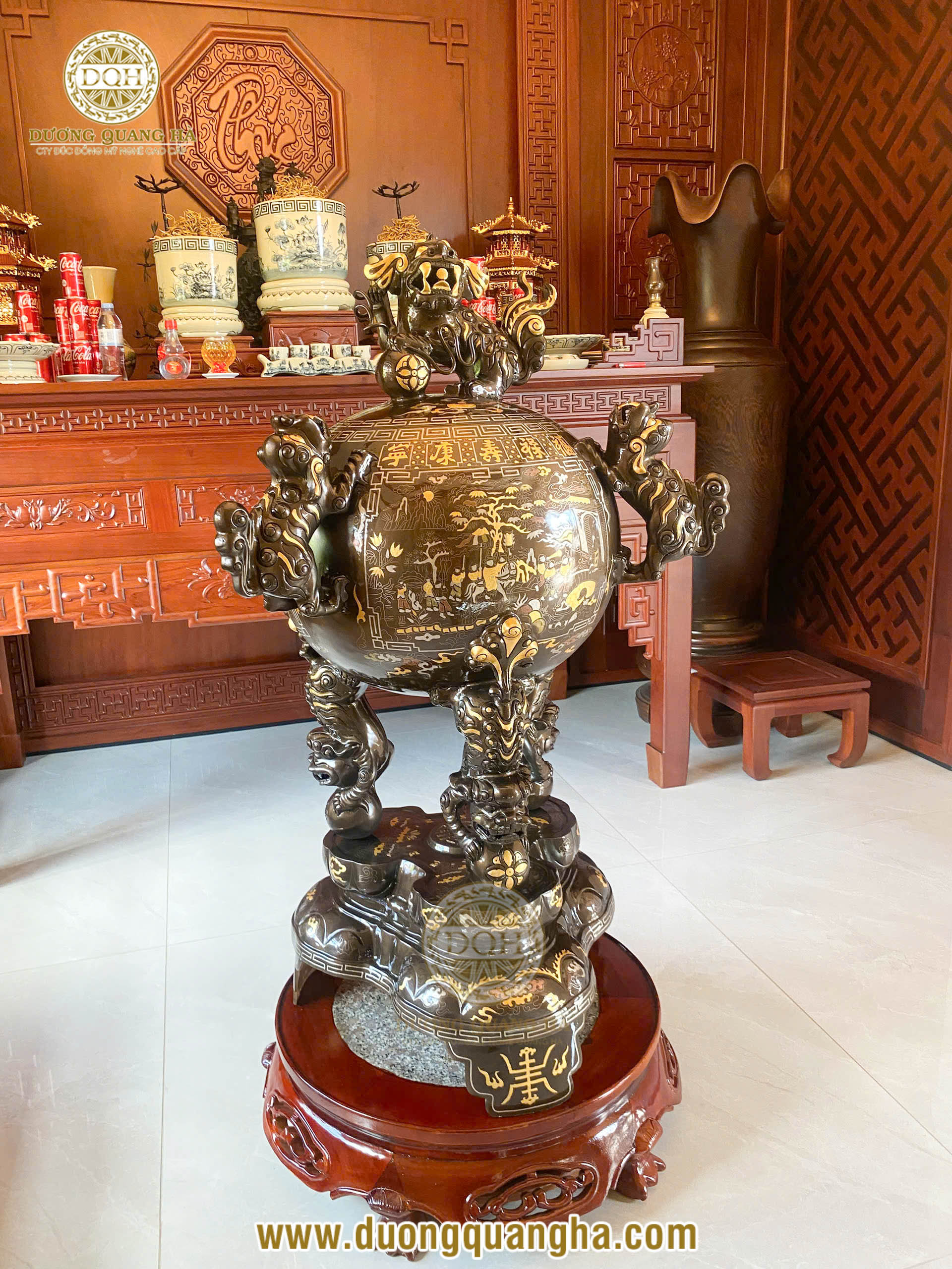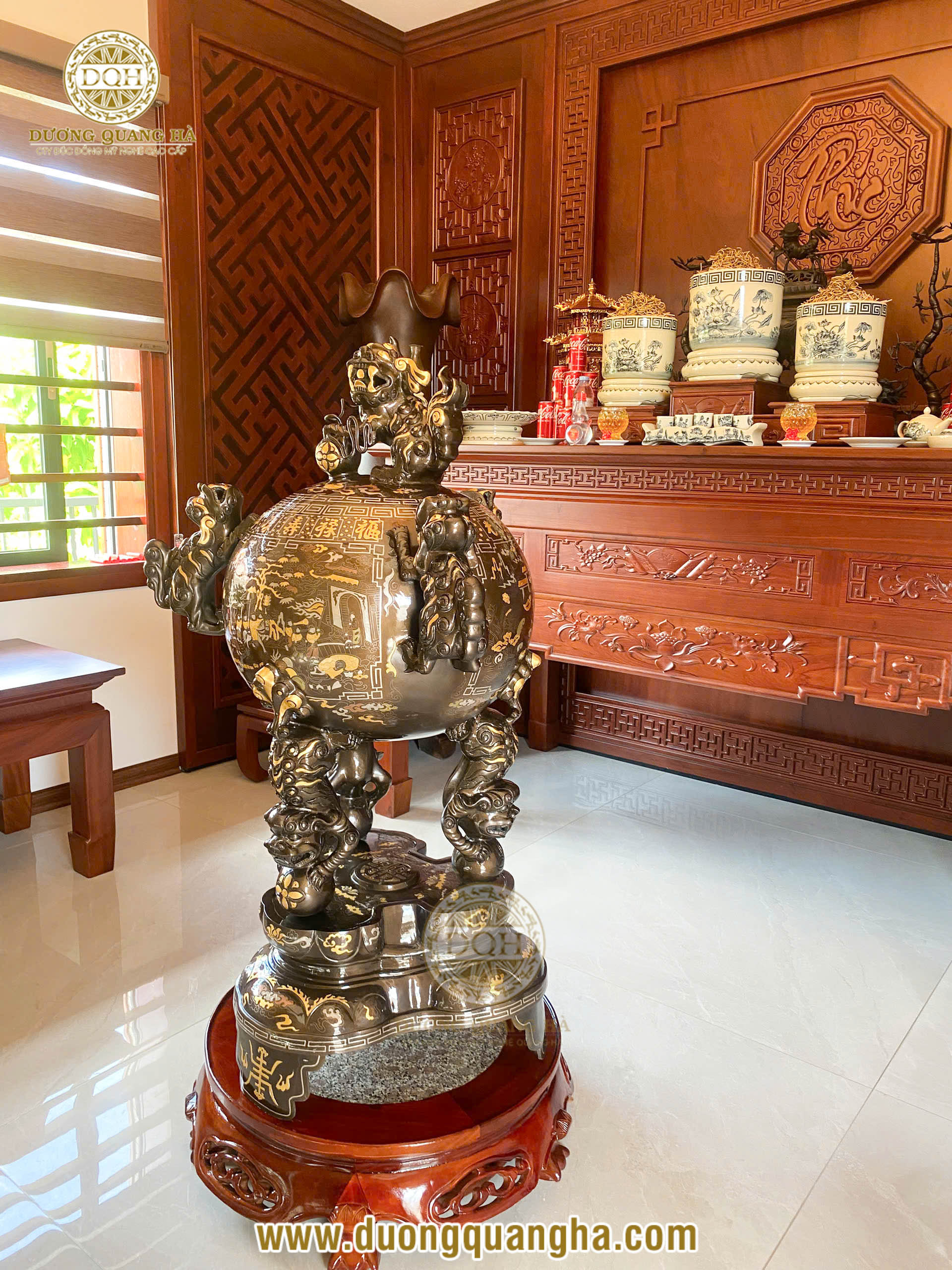Hoan hỉ ngày lành, Đúc đồng Dương Quang Hà vận chuyển và ban giao thành công quả đỉnh cầu thất lân cao 1m2 cho gia đình bác khách ở TP. Vinh, Nghệ An.