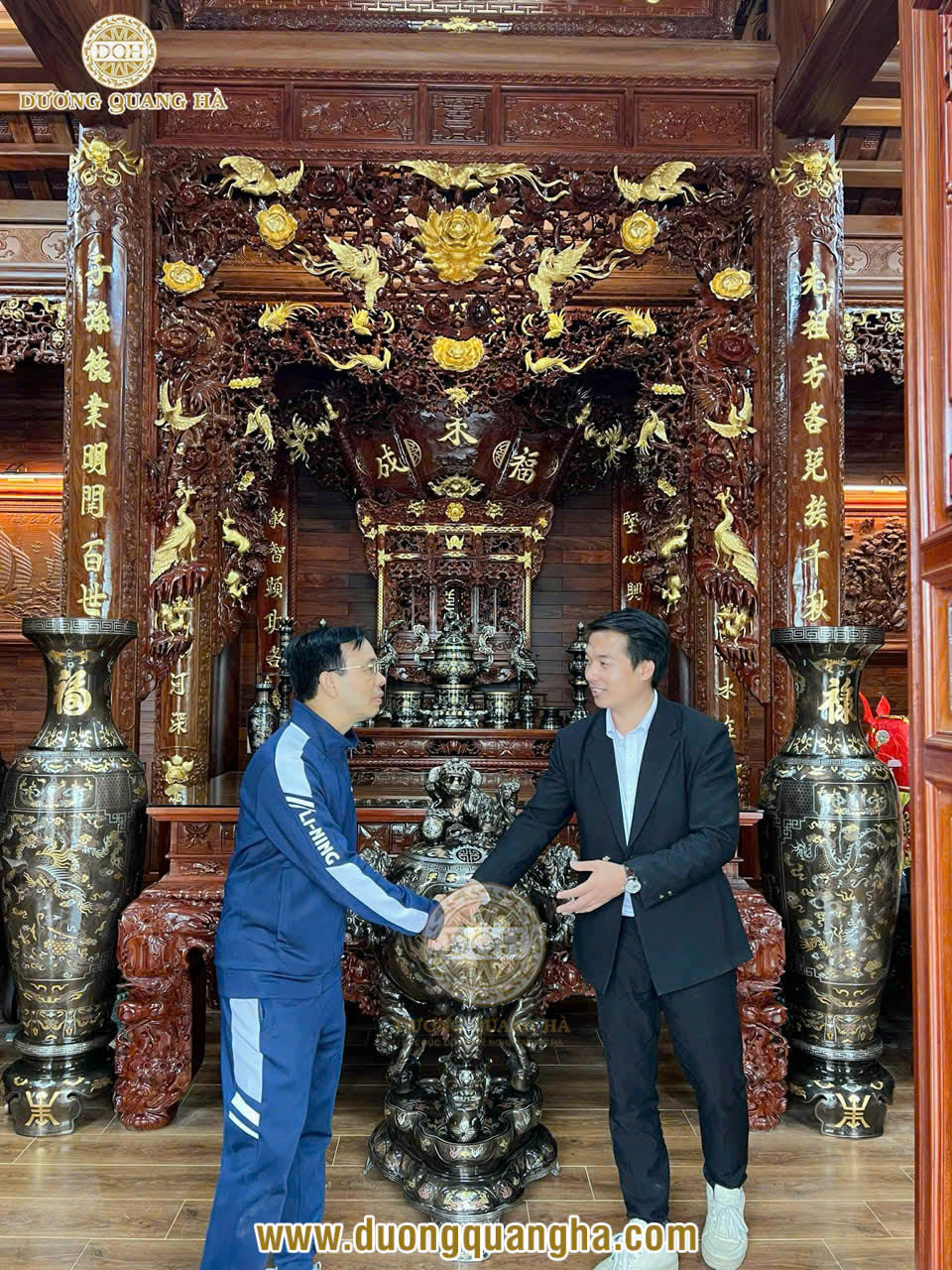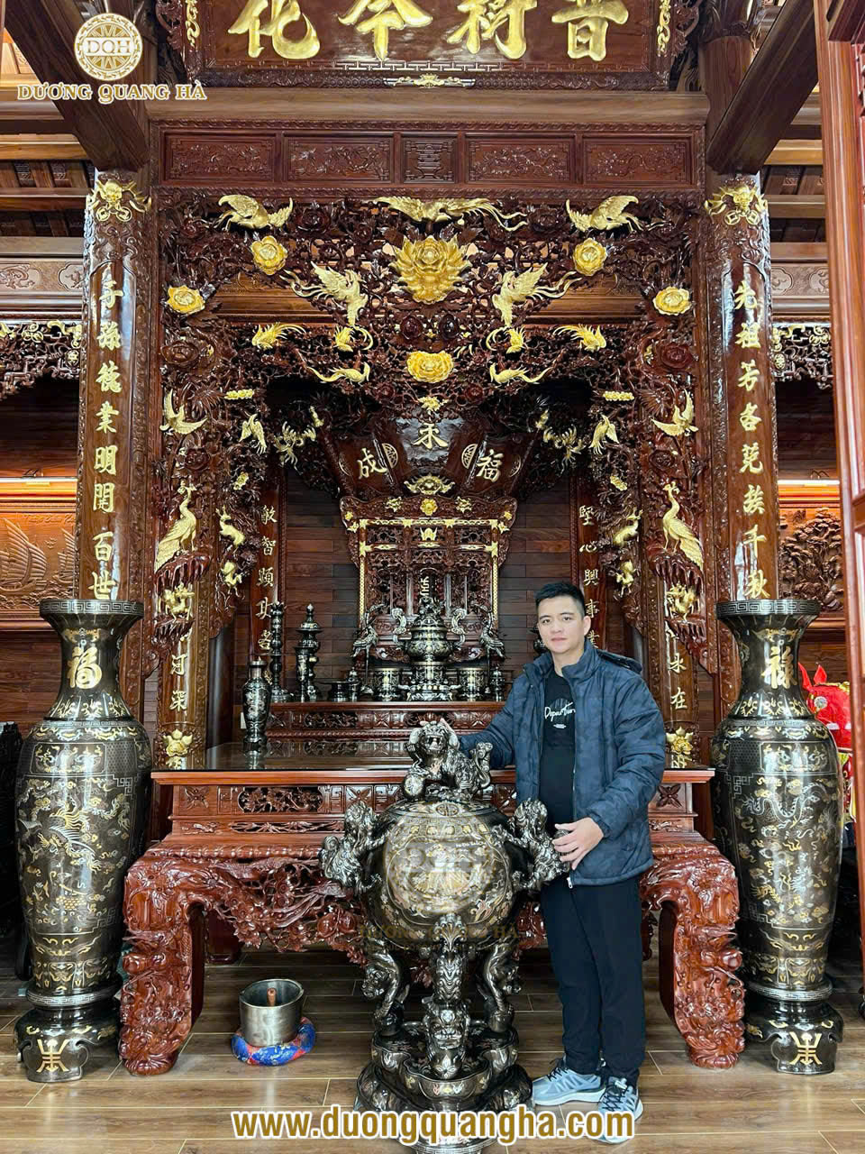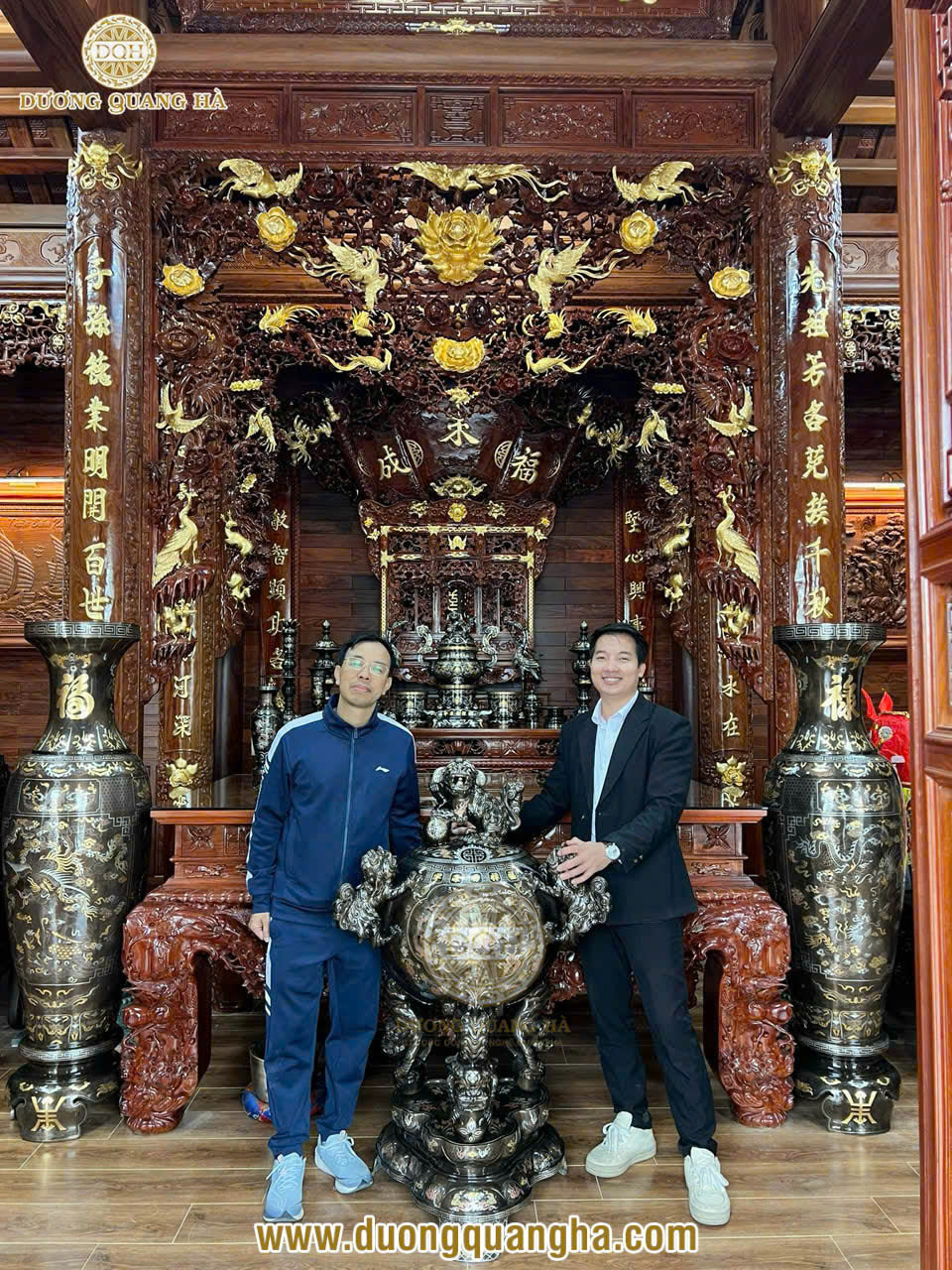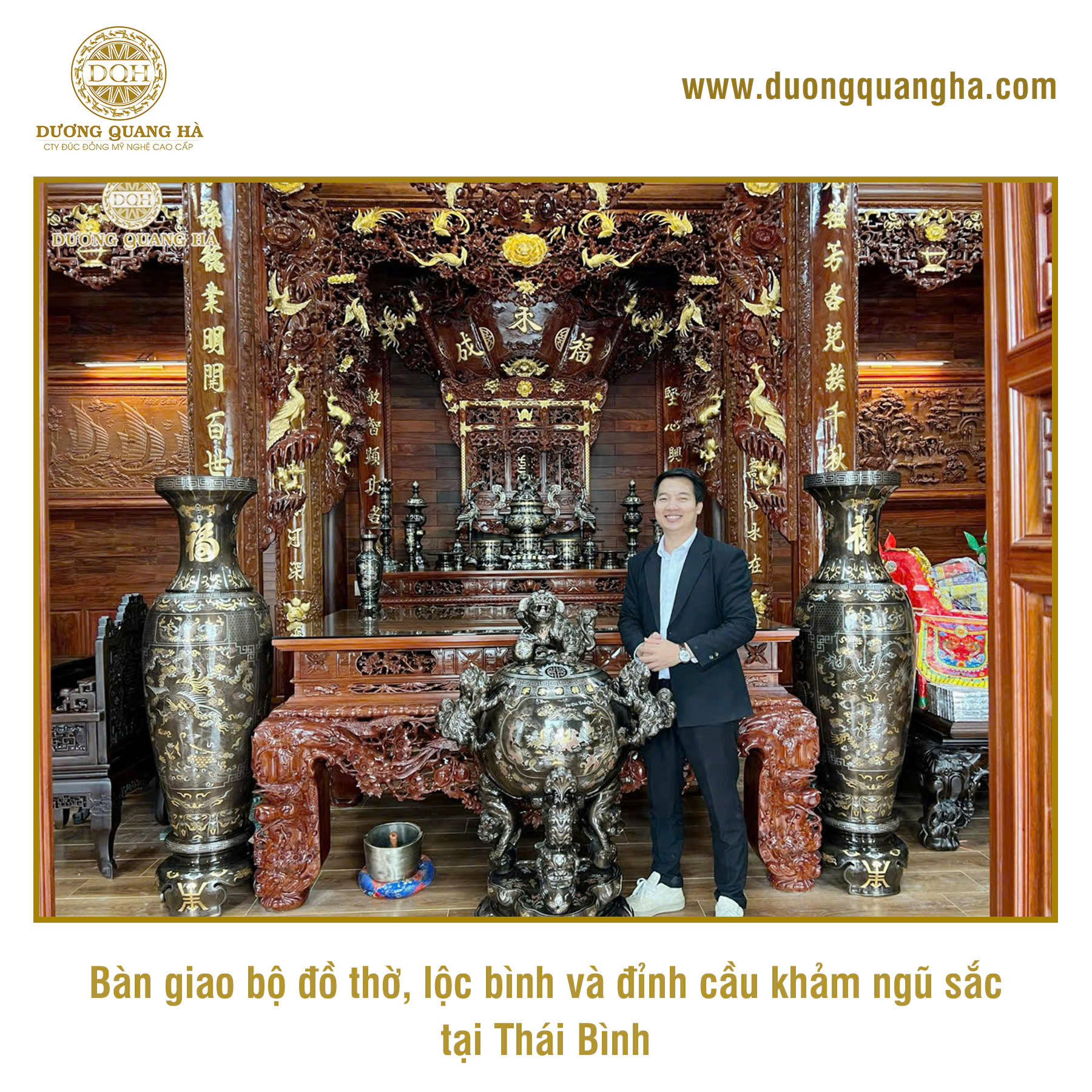 Mới đây, Đúc đồng Dương Quang Hà hoan hỉ bàn giao bộ đồ thờ, đỉnh cầu thất lân, 2 lọ lộc bình khảm ngũ sắc cho gia đình quý khách hàng tại Thái Bình. Các sản phẩm này mang vẻ đẹp sang trọng, chứa đựng tâm huyết của những nghệ nhân lành nghề, góp phần gìn giữ giá trị văn hóa truyền thống.