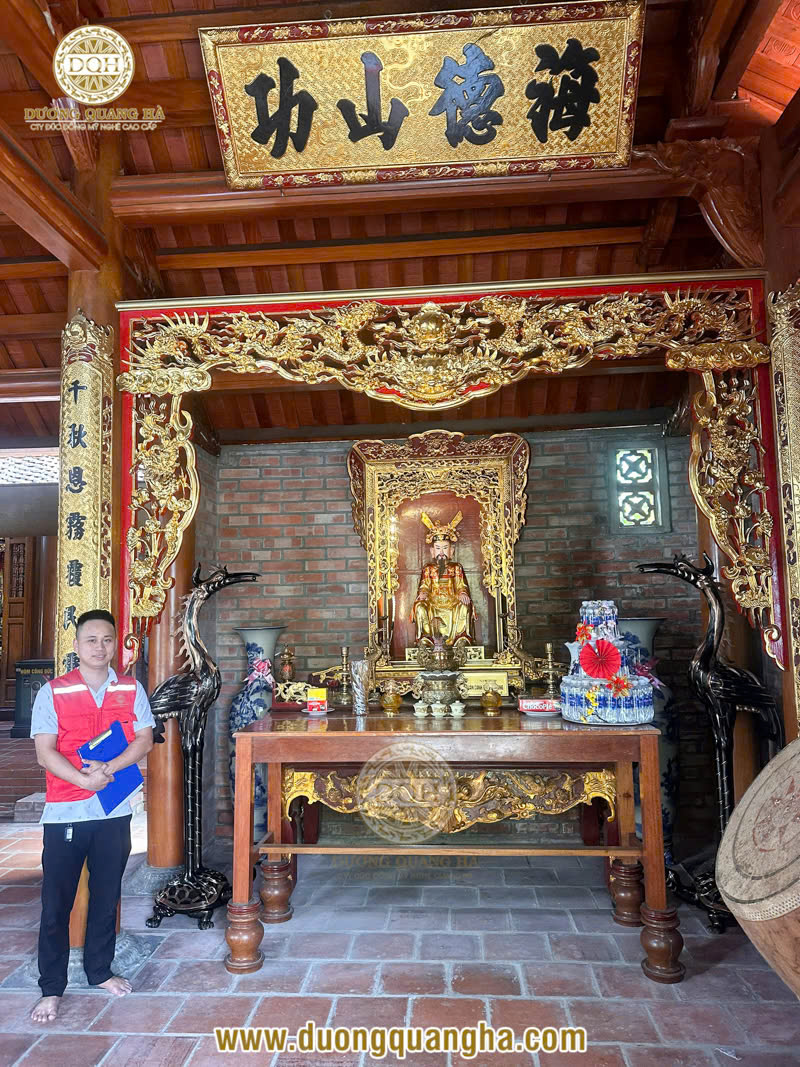 Trong không gian linh thiêng và giàu giá trị lịch sử ấy, Đúc đồng Dương Quang Hà vô cùng vinh dự bàn giao và lắp đặt thành công đôi hạc đồng đỏ cao 1m97 tới Đền Khe Sặt.
