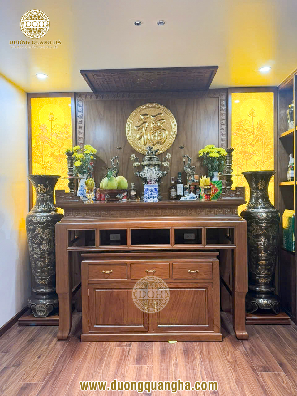 Bộ sản phẩm không chỉ mang giá trị thẩm mỹ tinh xảo mà còn chứa đựng ý nghĩa phong thủy sâu sắc, góp phần tạo nên không gian phòng thờ sang trọng, linh thiêng: