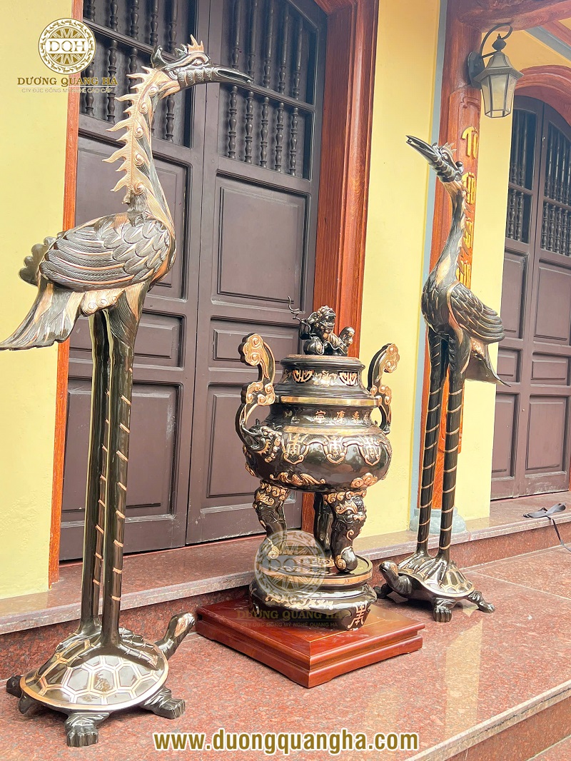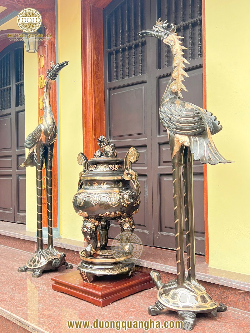 Mới đây, Đúc đồng Dương Quang Hà đã hoàn tất bàn giao đôi hạc thờ cao 1m55 cùng đỉnh đồng tai mây 90cm cho quý khách hàng tại Vũ Thư, Thái Bình (cũ).