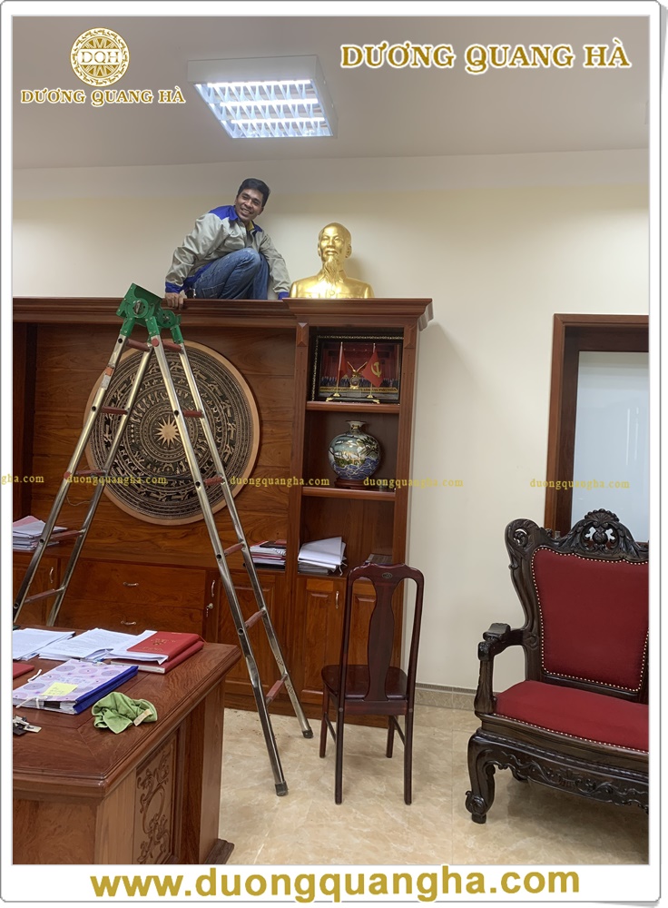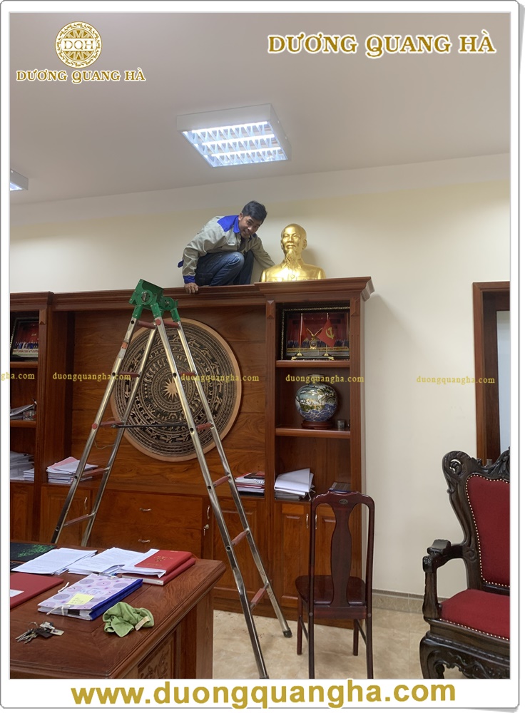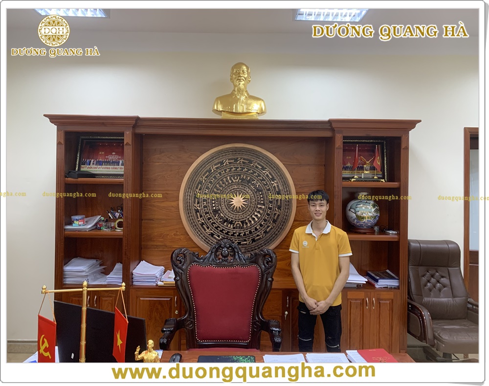 ĐÚC ĐỒNG DƯƠNG QUANG HÀ HOÀN THIỆN VÀ BÀN GIAO MẶT TRỐNG ĐÚC 1M2 VÀ TƯỢNG BÁC HỒ BÁN THÂN 60 DÁT VÀNG 9999 CHO UỶ BAN NHÂN DÂN HUYỆN - THỊ TRẤN ĐÔ LƯƠNG - TỈNH NGHỆ AN