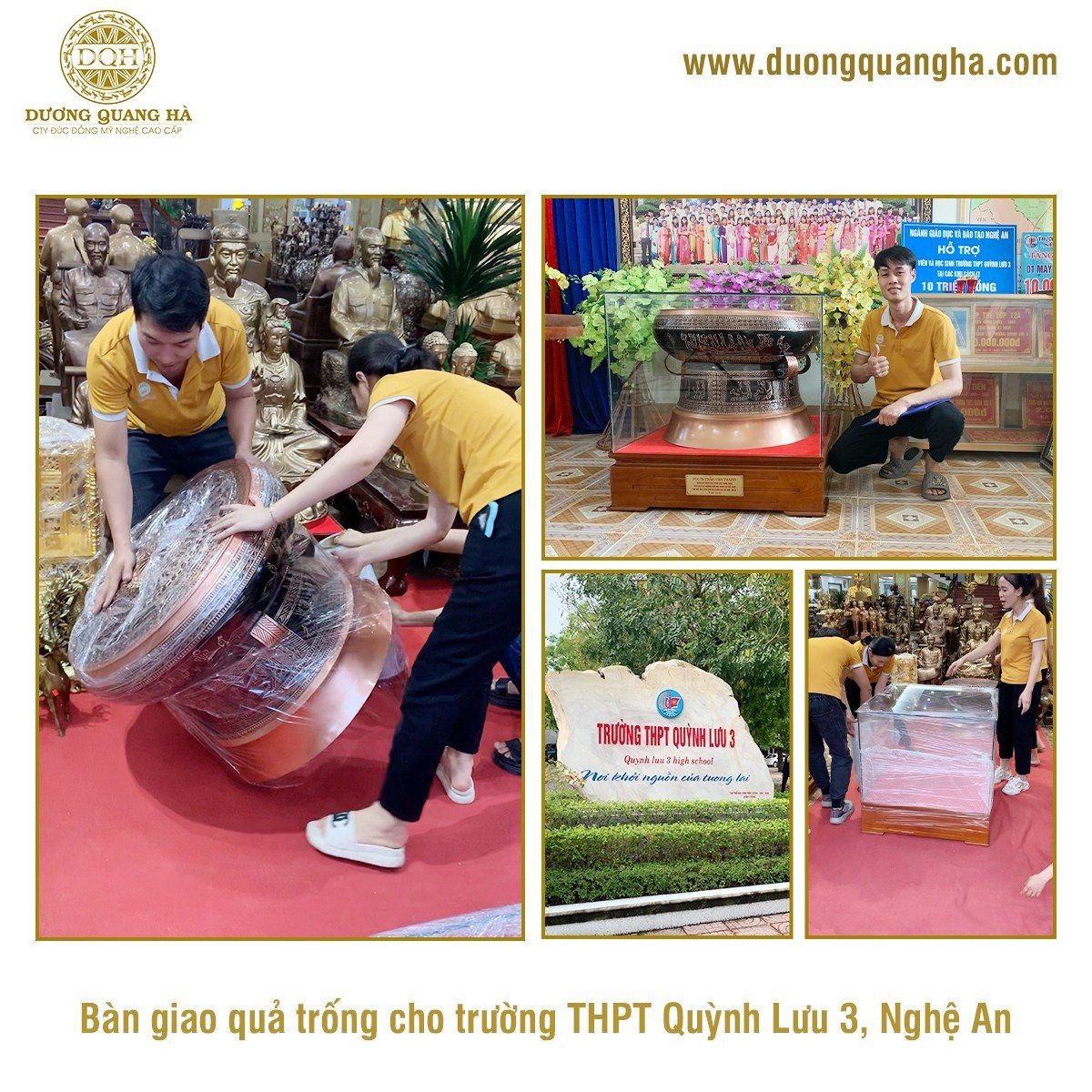 Đúc đồng Dương Quang Hà vinh dự được quý nhà trường trường THPT Quỳnh Lưu 3, tỉnh Nghệ An tin tưởng lựa chọn và đặt mua quả trống đồng đúc thủ công của chúng tôi.