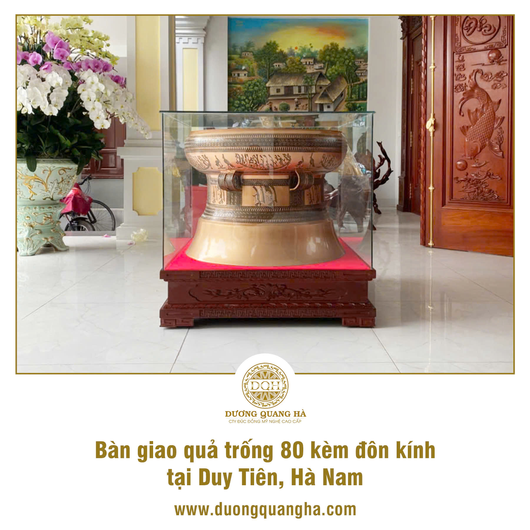 Mới đây, Đúc đồng Dương Quang Hà rất vui khi chúng tôi tiếp tục bàn giao thành công đơn hàng gồm 1 quả trống đồng 80 đúc đồng đỏ kèm đôn kính cho quý khách hàng ở Duy Tiên, Hà Nam.