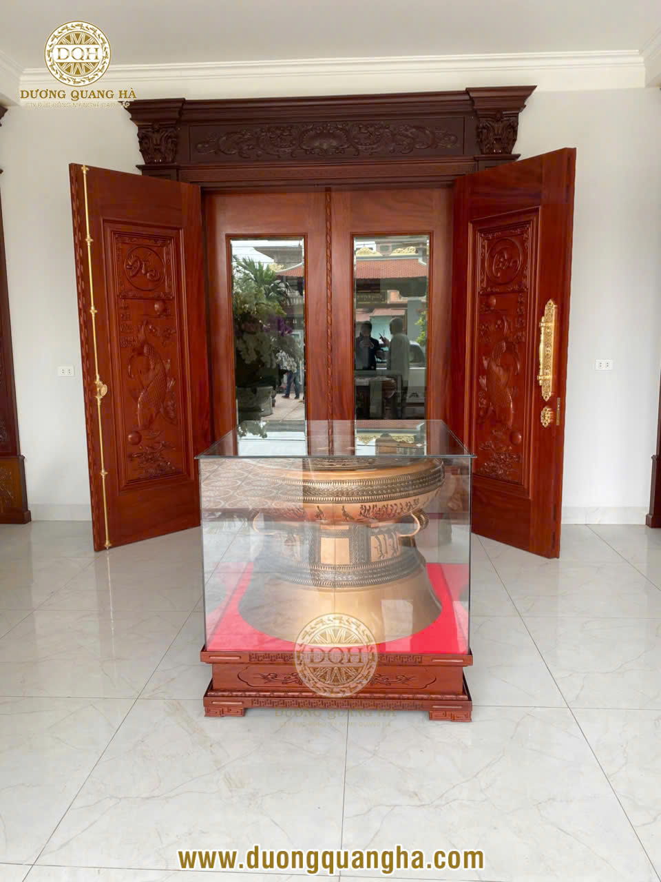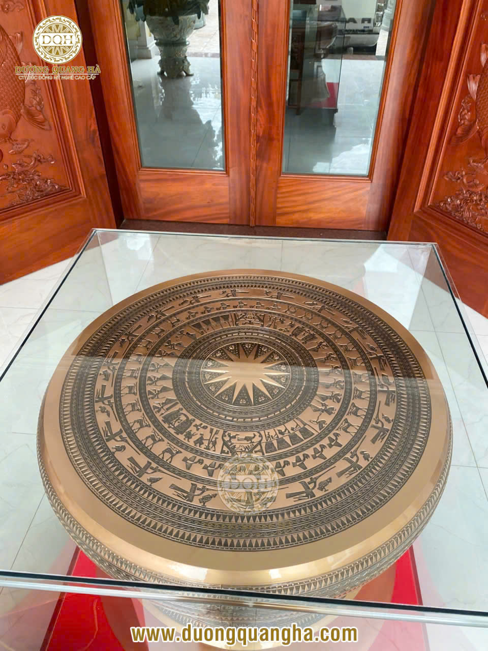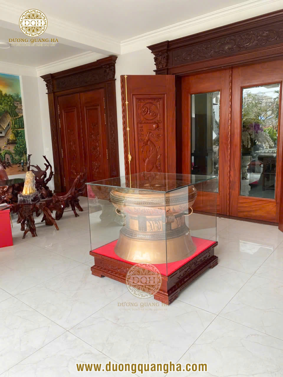 Bộ trống đồng đi kèm đôn kính không chỉ giúp tôn lên vẻ đẹp sang trọng mà còn bảo vệ sản phẩm khỏi tác động bên ngoài, đảm bảo giá trị lâu dài theo thời gian.