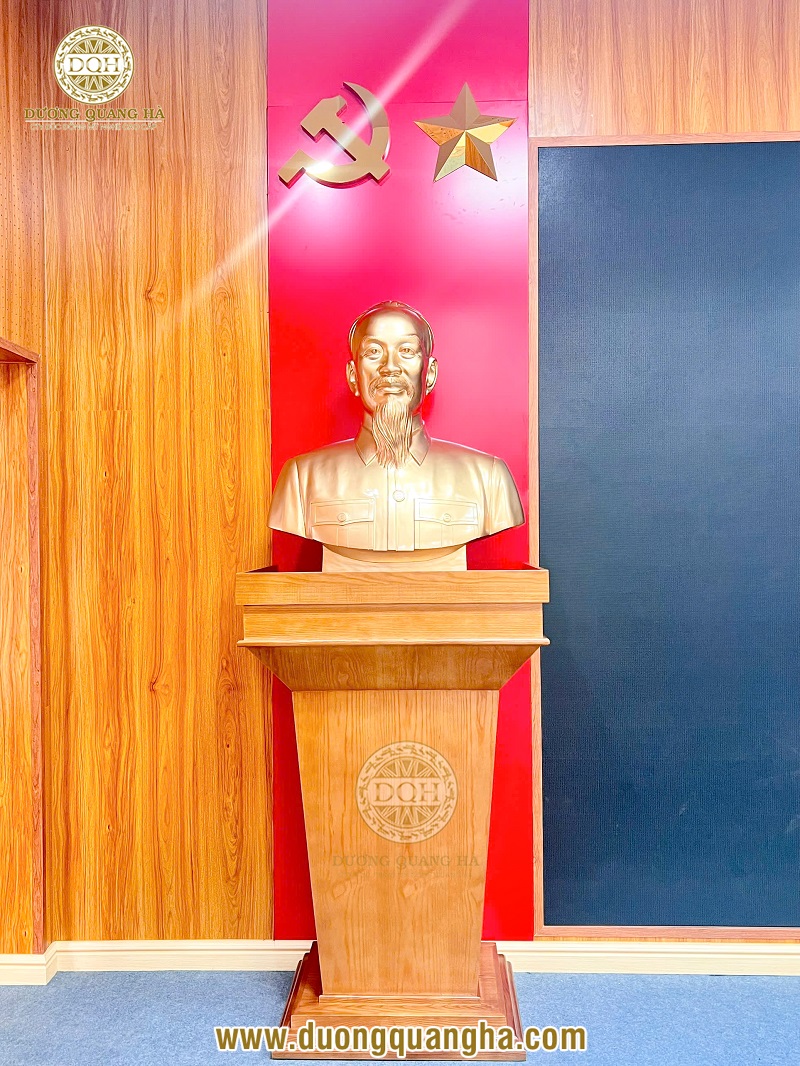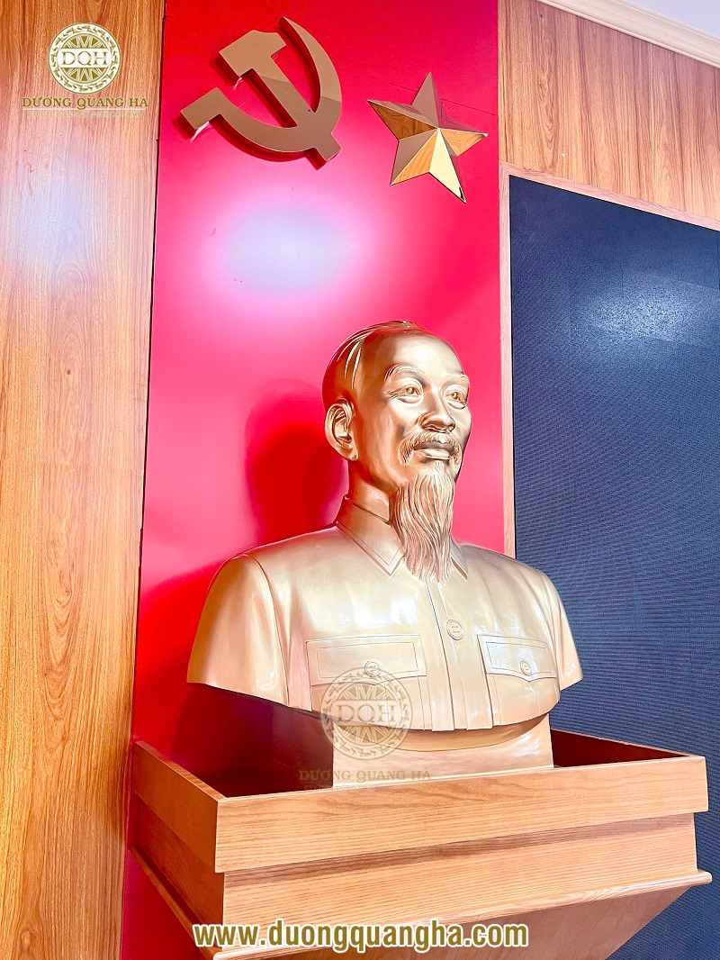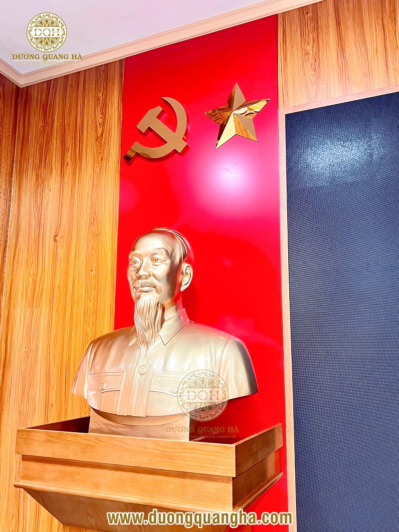Pho tượng Bác được đúc bằng đồng nguyên chất, bề mặt xử lý tinh xảo, màu sắc trang nhã, vừa trang trọng vừa ấm áp, tạo cảm giác tôn nghiêm nhưng gần gũi.