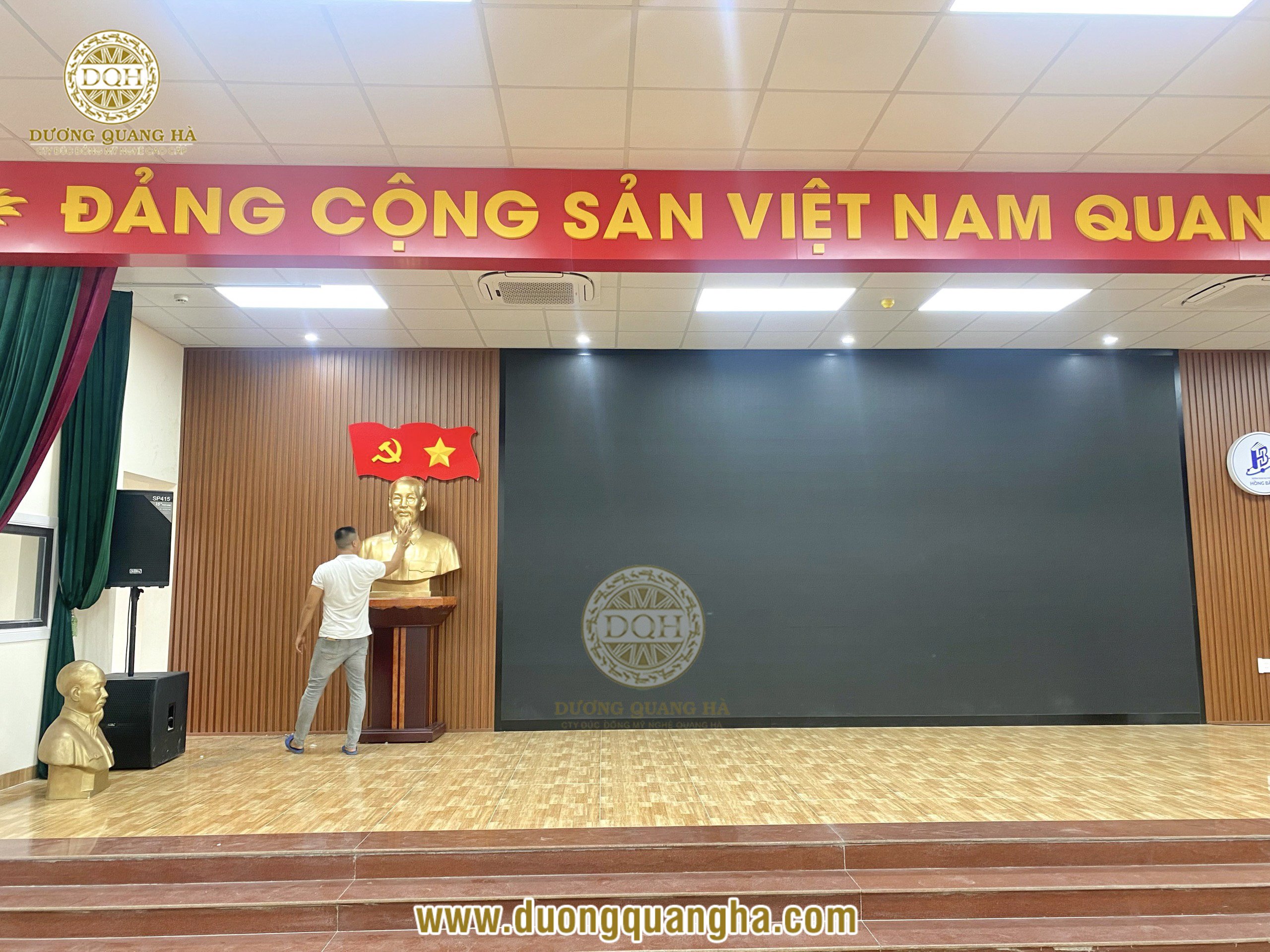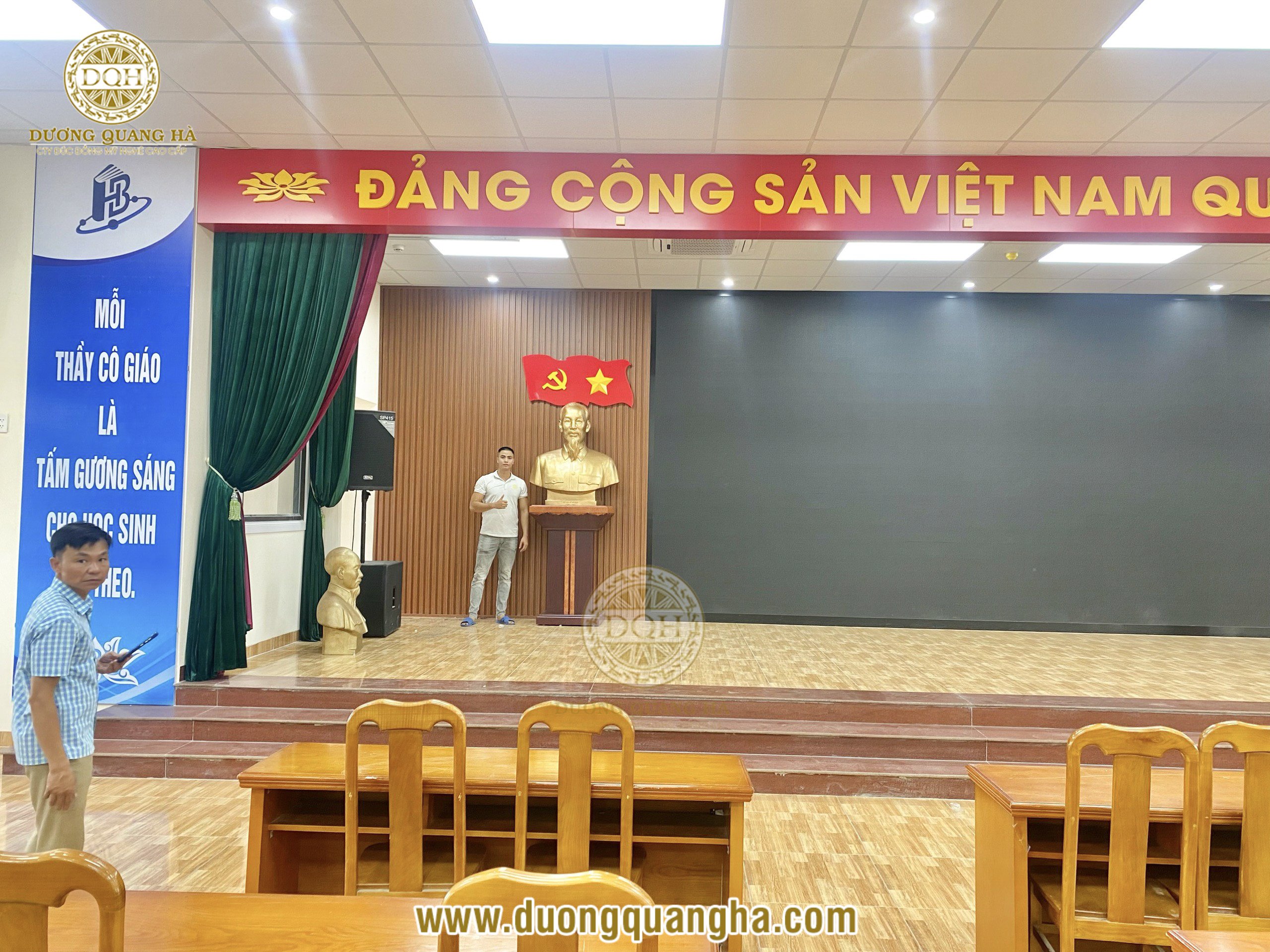 Hôm nay, Đúc đồng Dương Quang Hà đã có chuyến bàn giao và lắp đặt pho tượng Bác Hồ bán thân cao 1m1, làm màu sang trọng cho hội trường trường THPT Hồng Bàng, quận Hồng Bàng, TP. Hải Phòng.