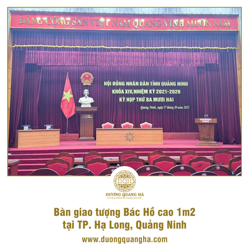 Hôm nay, đội ngũ Đúc đồng Dương Quang Hà đã hoàn thiện vận chuyển và bàn giao thành công pho tượng Bác Hồ bán thân cao 1m2 tại Hội trường HĐND tỉnh Quảng Ninh - TP. Hạ Long.