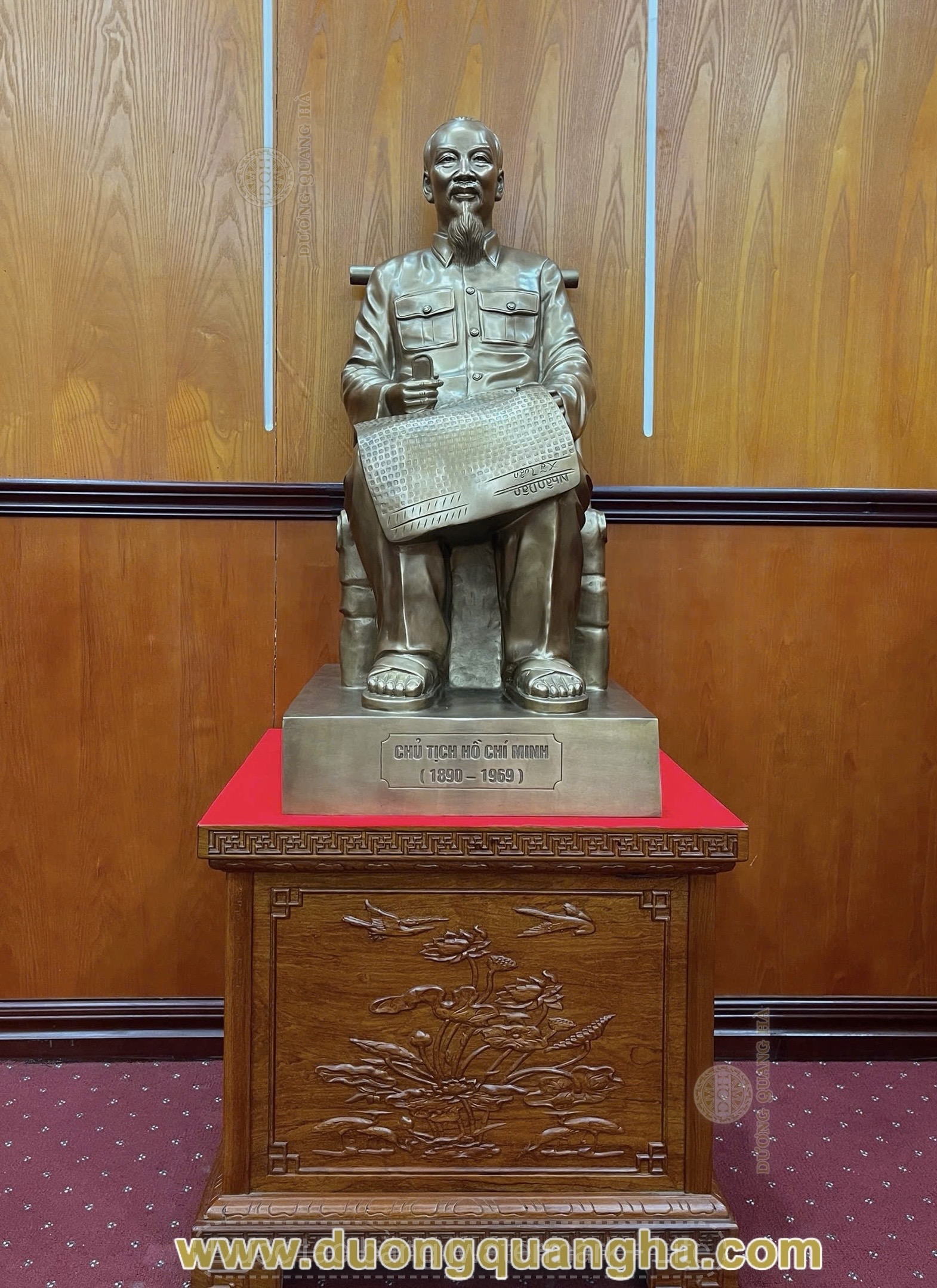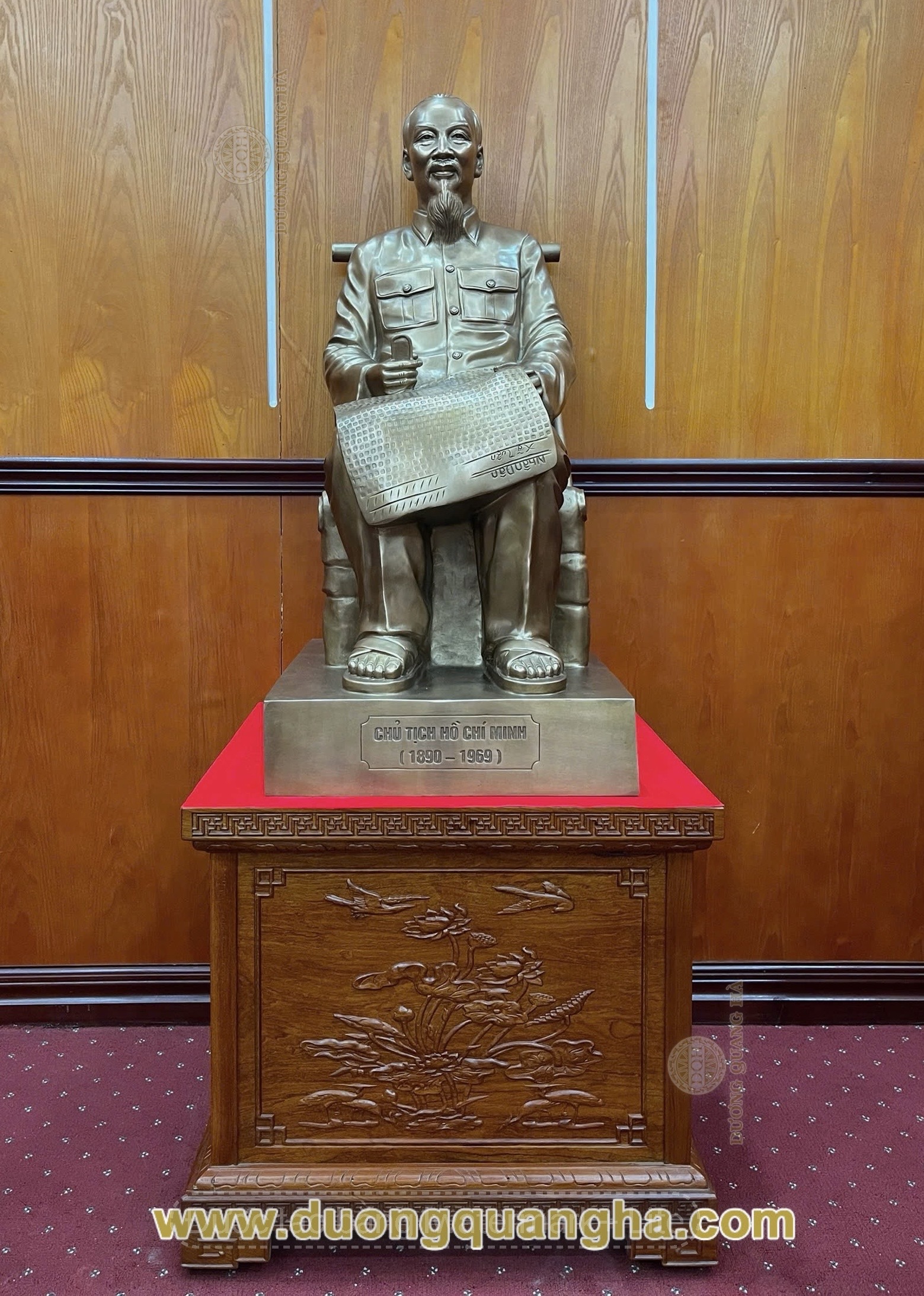 Sau một thời gian phối hợp nhịp nhàng giữa khách hàng và đội ngũ nghệ nhân, công nhân tại xưởng, từ khâu lên mẫu, tạo khuôn, đúc tượng, tinh chỉnh… đội ngũ Đúc đồng Dương Quang Hà đã hoàn thiện và bàn giao cho khách hàng Tóm tắt về sản phẩm: Tất cả sản phẩm được đúc, gia công chế tác, chạm khảm tất cả đều được làm thủ công bằng tay mỗi sản phẩm thực sự là một tác phẩm đồng mỹ nghệ tinh xảo đến mức cao nhất, với những đường nét lưu loát, có giá trị thực sự cao của những nghệ nhân, những người thợ tài hoa từ làng nghề đúc đồng Huyện Ý Yên, Tỉnh Nam Định. Kích thước sản phẩm: