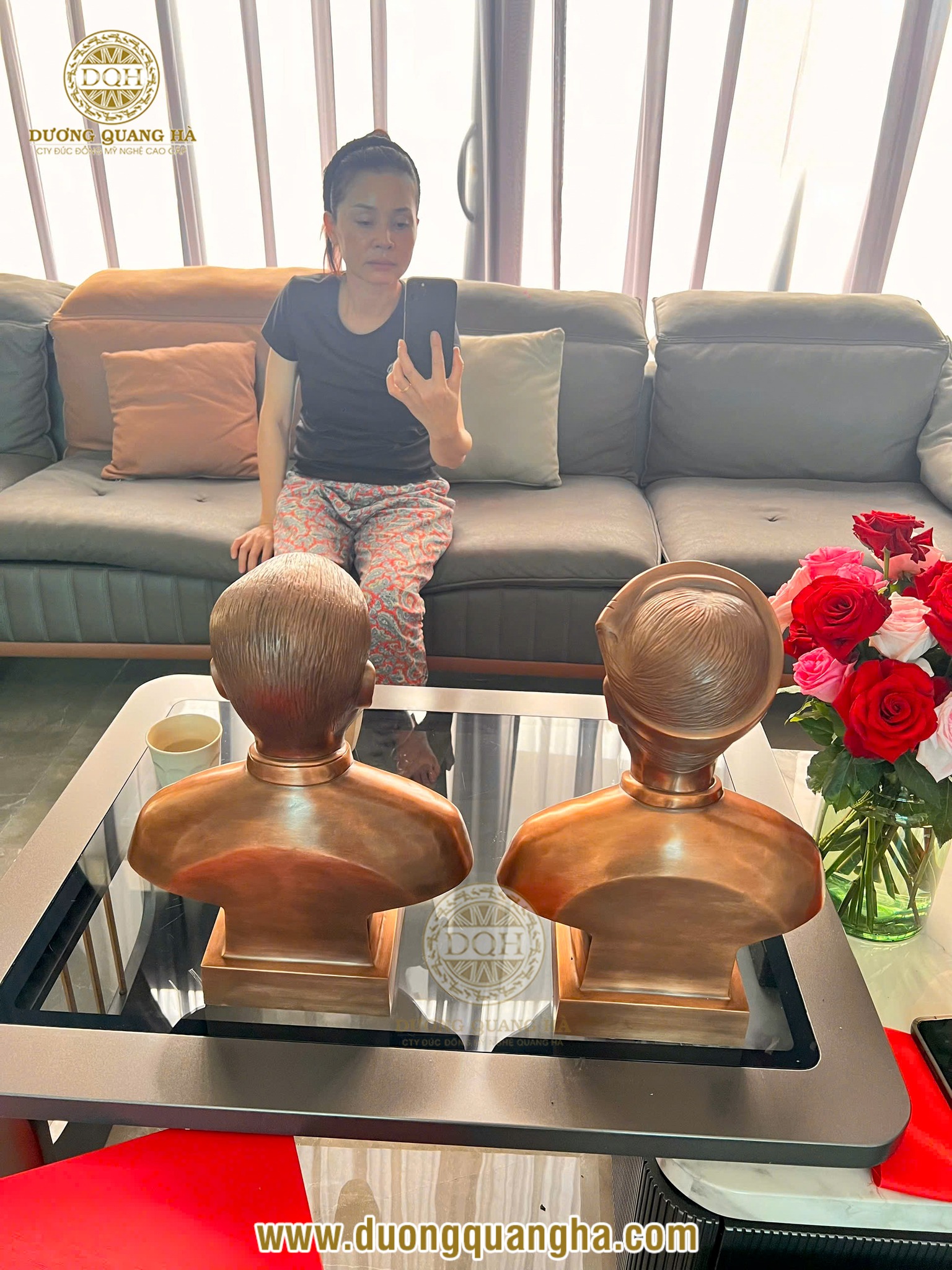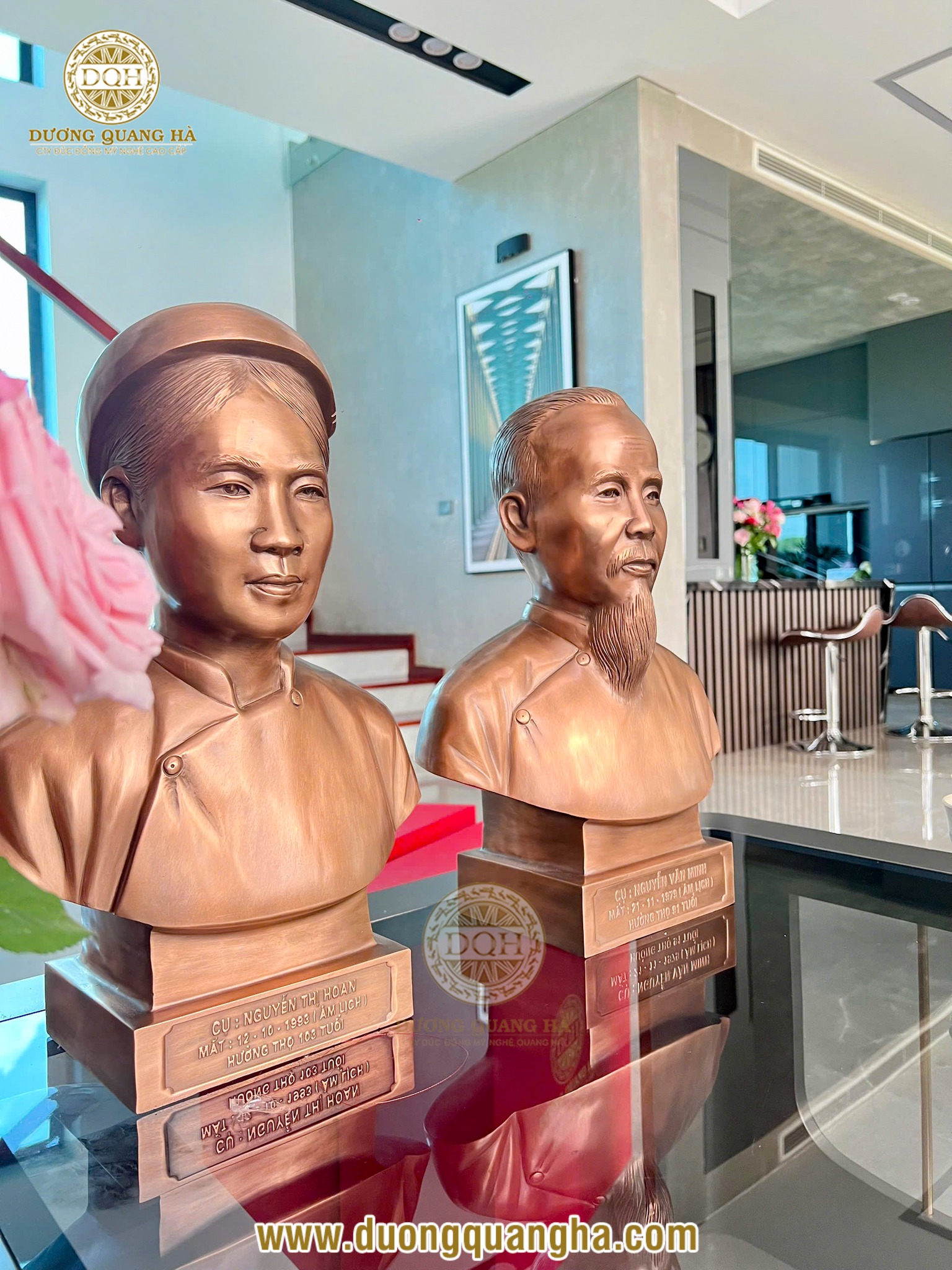 Mỗi pho tượng được chế tác từ đồng đỏ nguyên chất, bề mặt xử lý tỉ mỉ, làm màu giả cổ sang trọng, phản ánh chân thực thần thái hiền từ và phong thái trang nghiêm. Đây không chỉ là tác phẩm nghệ thuật mà còn là kỷ vật vô giá, lưu giữ hình ảnh và ký ức thiêng liêng cho con cháu đời sau.