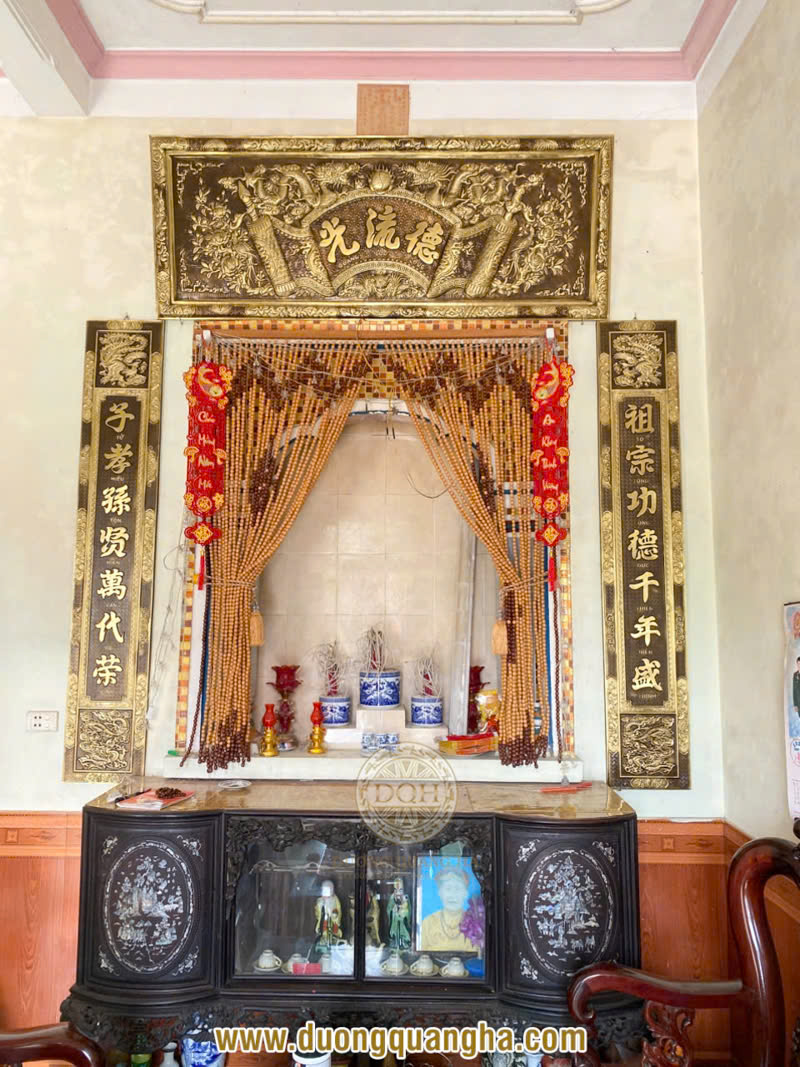 Cuối tuần vừa qua, đội ngũ Đúc đồng Dương Quang Hà đã hoàn thiện bàn giao và lắp đặt bộ đại tự câu đối 1m76 làm màu cổ cho gia đình quý khách hàng tại huyện Nghĩa Hưng, Nam Định.