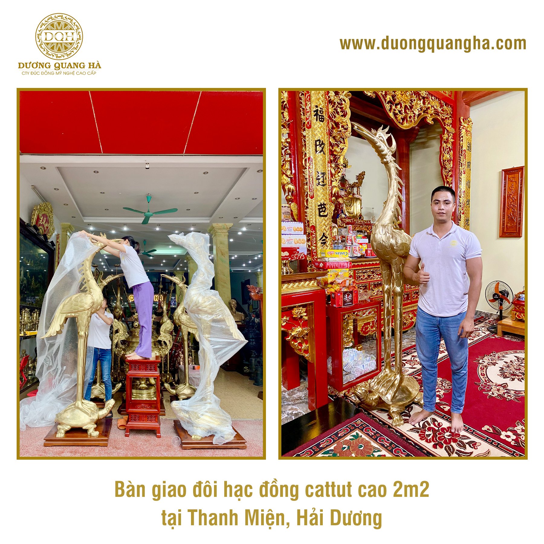 Đúc đồng Dương Quang Hà xin chân thành cảm ơn quý khách hàng đã tin tưởng, đặt mua đôi hạc thờ bằng đồng này của chúng tôi.