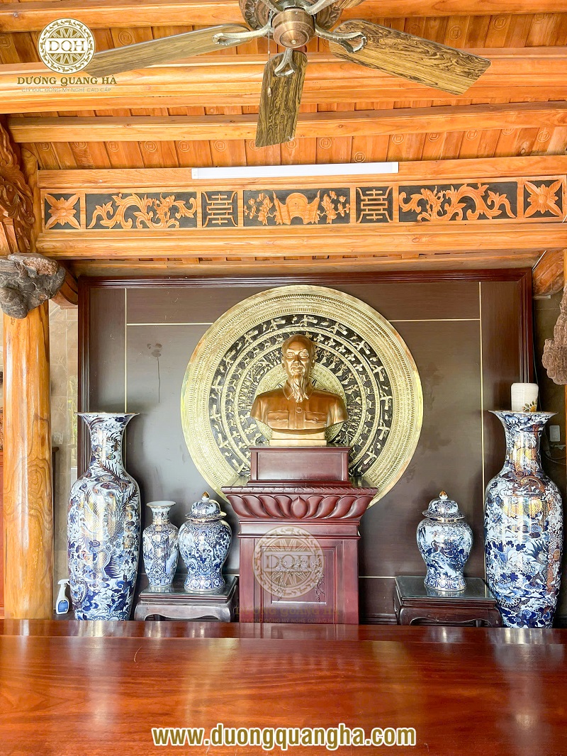 Tiếp nối hành trình mang tinh hoa đồ đồng mỹ nghệ Việt đến khắp mọi miền, đội ngũ Đúc đồng Dương Quang Hà vừa hoàn thành bàn giao và lắp đặt mặt trống đồng vàng gò đường kính 1m6 cho khách hàng tại Mê Linh, Hà Nội.