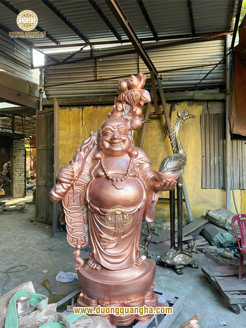 Tượng Phật Di Lặc tại Đúc đồng Dương Quang Hà được đúc từ đồng đỏ nguyên chất - loại đồng có độ bền cao, màu sắc đẹp và mang giá trị phong thủy đặc biệt.