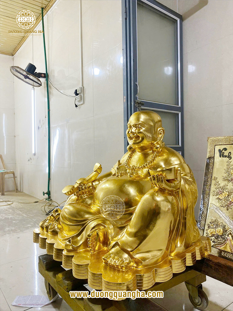 Tượng Phật Di Lặc dát vàng tại xưởng sản xuất của Đúc Đồng Dương Quang Hà
