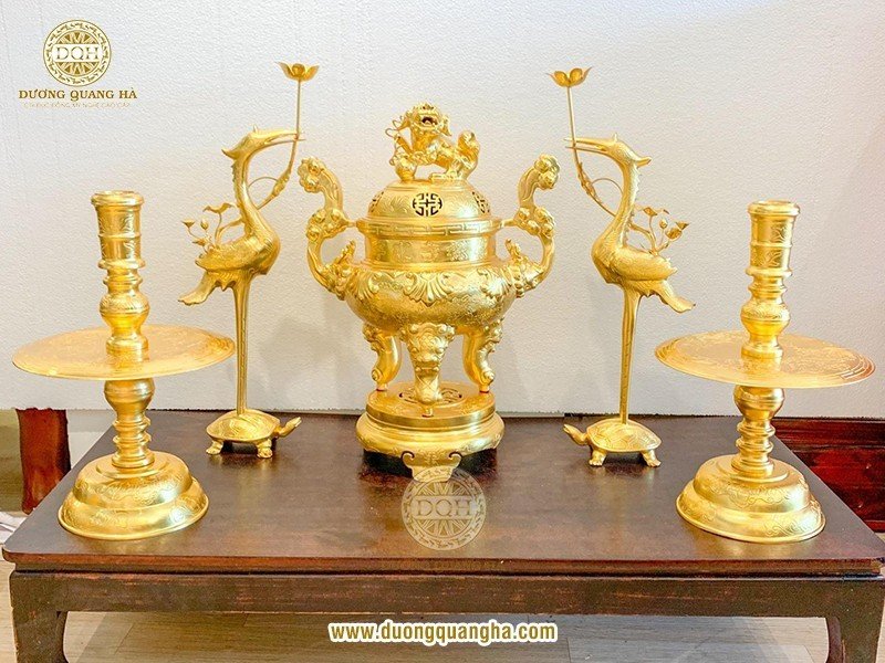 Bộ đỉnh đồng là một trong những vật phẩm không thể thiếu trong các nhà thờ tổ, các bàn thờ gia tiên tại gia, mang nhiều ý nghĩa sâu sắc và giá trị tâm linh đặc biệt.