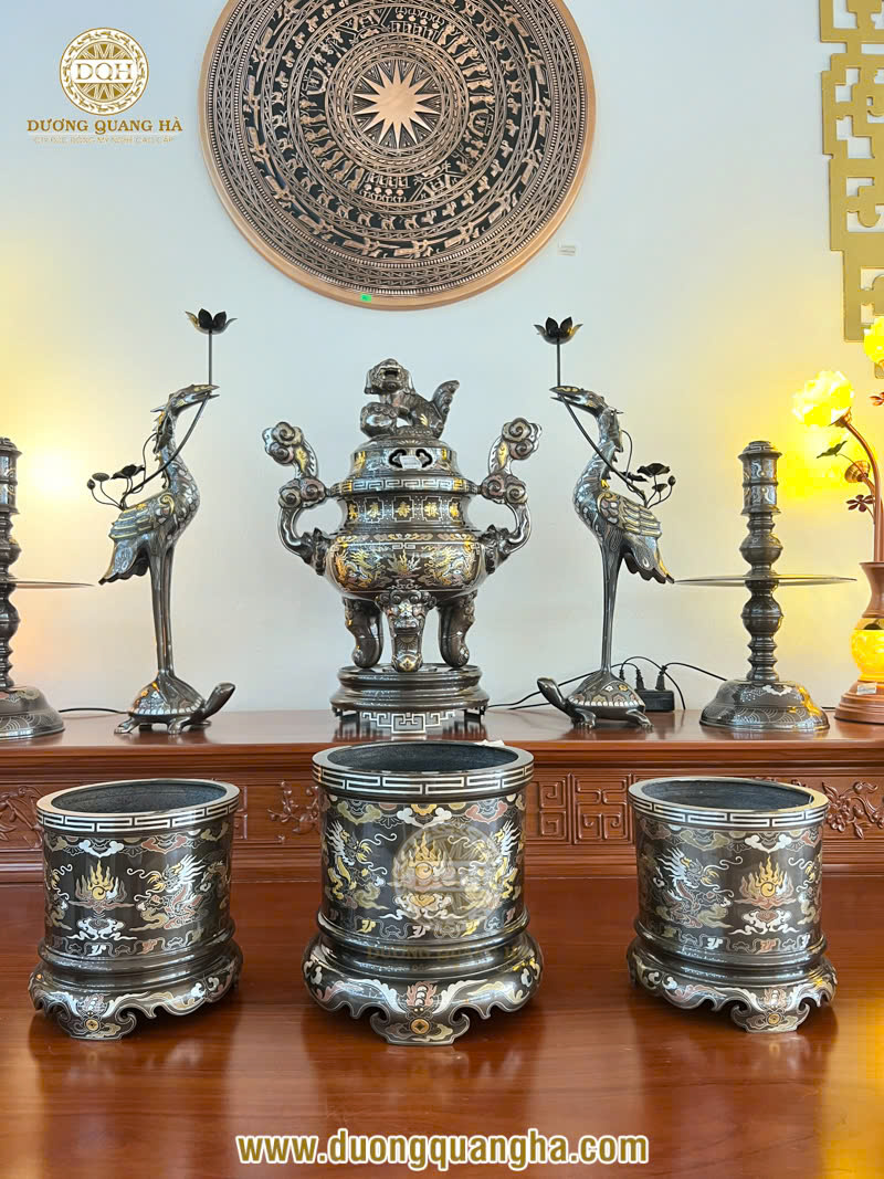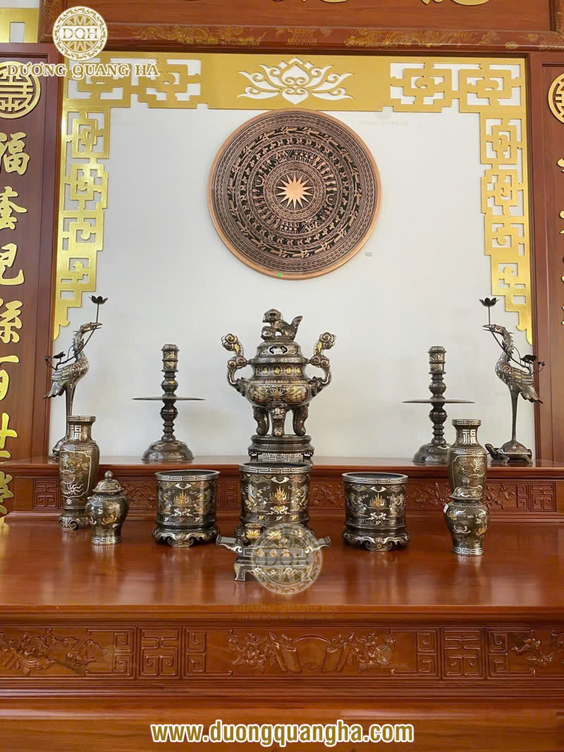 Với gần 25 năm hoạt động trong lĩnh vực chế tác đồ thờ và các sản phẩm đồng mỹ nghệ, Đúc đồng Dương Quang Hà là một trong những thương hiệu hàng đầu tại Việt Nam. Đến từ làng nghề đúc đồng truyền thống Ý Yên, Nam Định, nơi có những nghệ nhân đúc đồng giàu kinh nghiệm, thương hiệu này đã khẳng định được vị thế của mình qua hàng loạt sản phẩm tinh xảo, mang đậm giá trị nghệ thuật và tâm linh. Bộ đồ thờ bằng đồng tại đây được chế tác tỉ mỉ, từng đường nét hoa văn đều mang đậm nét văn hóa truyền thống, thể hiện lòng kính trọng với tổ tiên và các đấng thần linh.