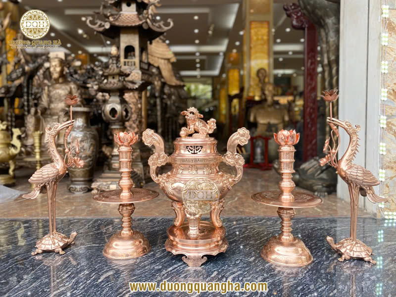 Nơi đây cung cấp bộ đồ thờ bằng đồng đầy đủ với nhiều mẫu mã, kích thước khác nhau, phù hợp với mọi không gian thờ cúng từ lớn đến nhỏ. Mỗi vật phẩm đều được thiết kế với phong cách tinh tế, vừa giữ được giá trị truyền thống, vừa mang tính nghệ thuật cao.
