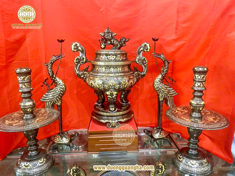 Bộ đỉnh đồng ngũ sự thường được kết hợp với các vật phẩm thờ cúng khác như: