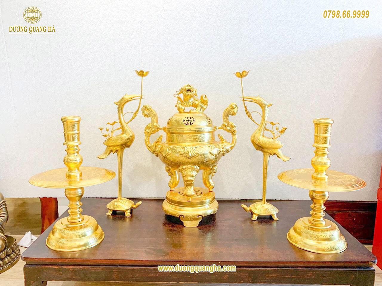 Tên gọi sản phẩm: Bộ ngũ sự đồng đỏ dát vàng 9999
