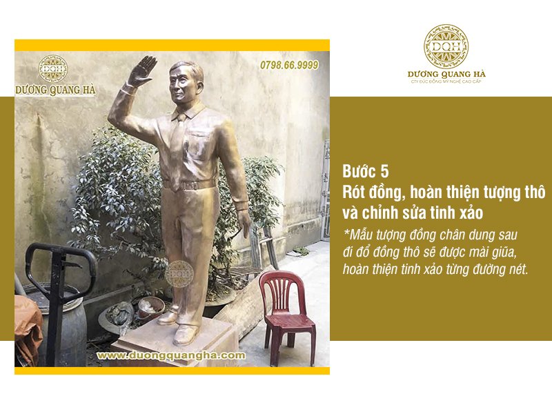 Để có được những bức tượng đồng chân dung đẹp, các nghệ nhân đúc đồng truyền thống của Dương Quang Hà đã phải rất dày công, tỉ mỉ từ khâu tiếp nhận yêu cầu, dựng tạo khuôn cơ bản rồi hoàn thiện chi tiết.