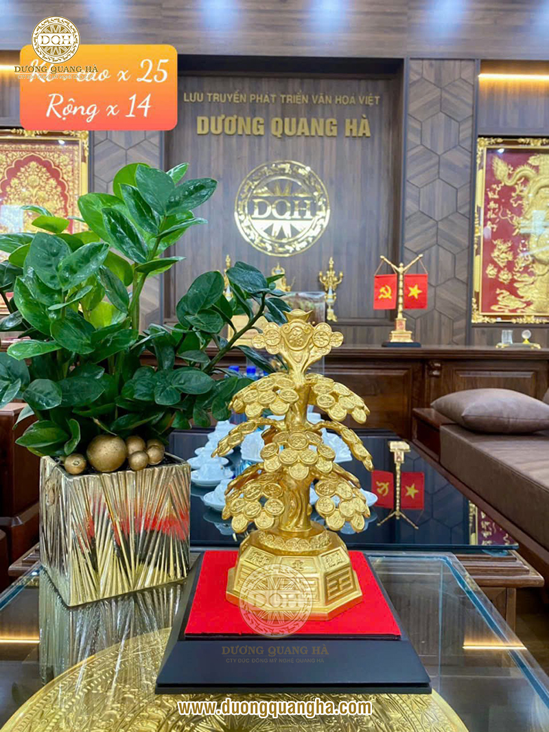 Cây tài lộc sum suê trưng bày tại showroom Đúc đồng Dương Quang Hà
