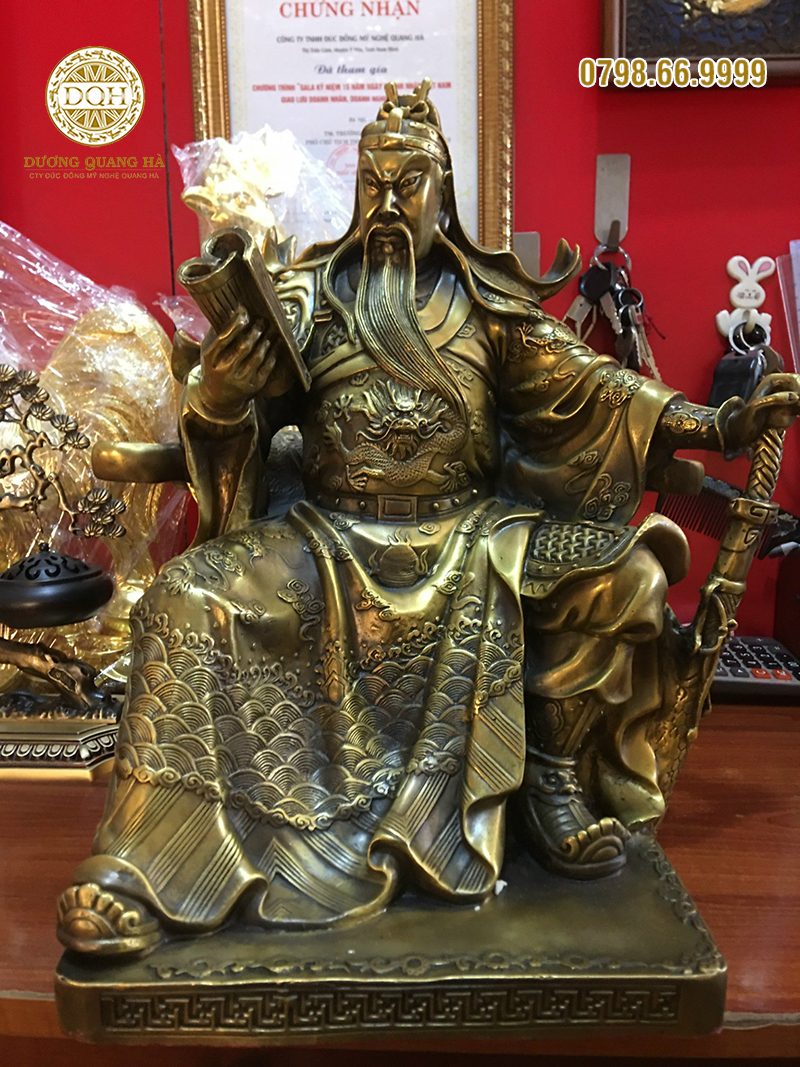 Tượng Quan Công bằng đồng ngồi đọc sách