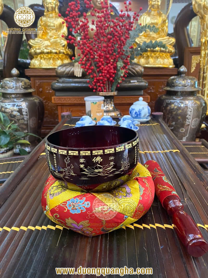Chuông bát còn gọi là chuông gia trì là pháp khí quan trọng được nhiều sư thầy, tăng ni, Phật tử sử dụng trong tụng kinh, tu tập ở chùa chiền hoặc gia đình. Nếu quý khách hàng đang tìm mua chuông bát chất lượng, giá tốt, hãy ghé showroom Đúc đồng Dương Quang Hà để chọn mua nhé!
