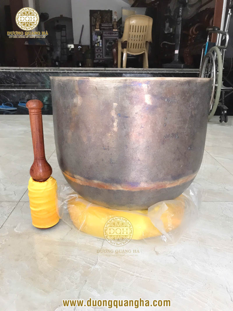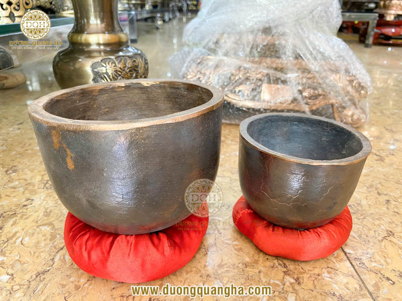 - Hình dáng: Như chiếc bát úp ngược, miệng loe nhẹ, có mõ gỗ đi kèm để sử dụng phối hợp khi tụng kinh.