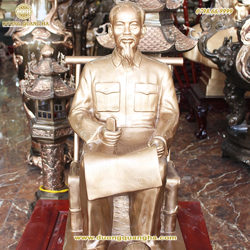 Tượng Bác Hồ ngồi ghế mây đọc báo đồng đỏ