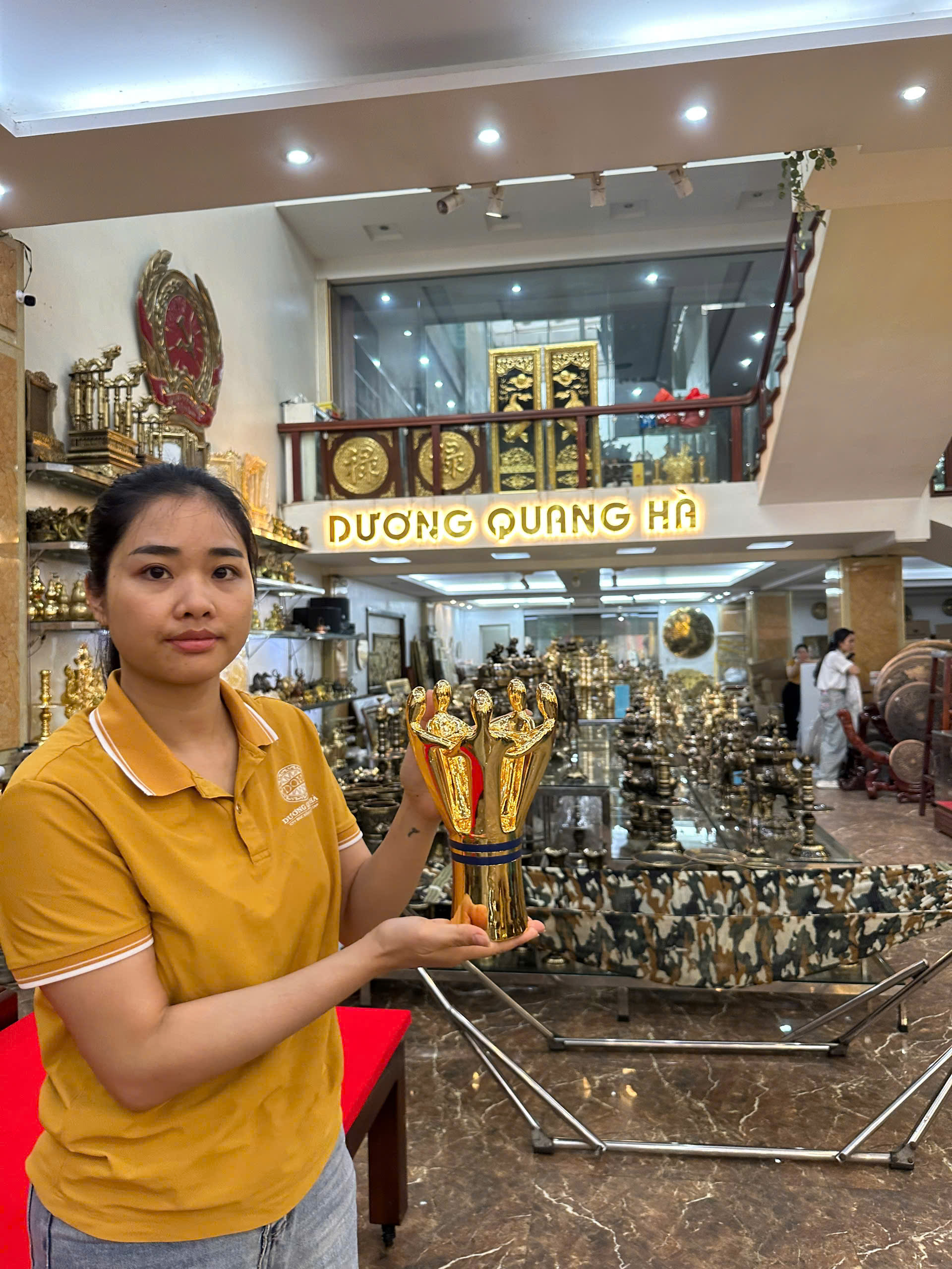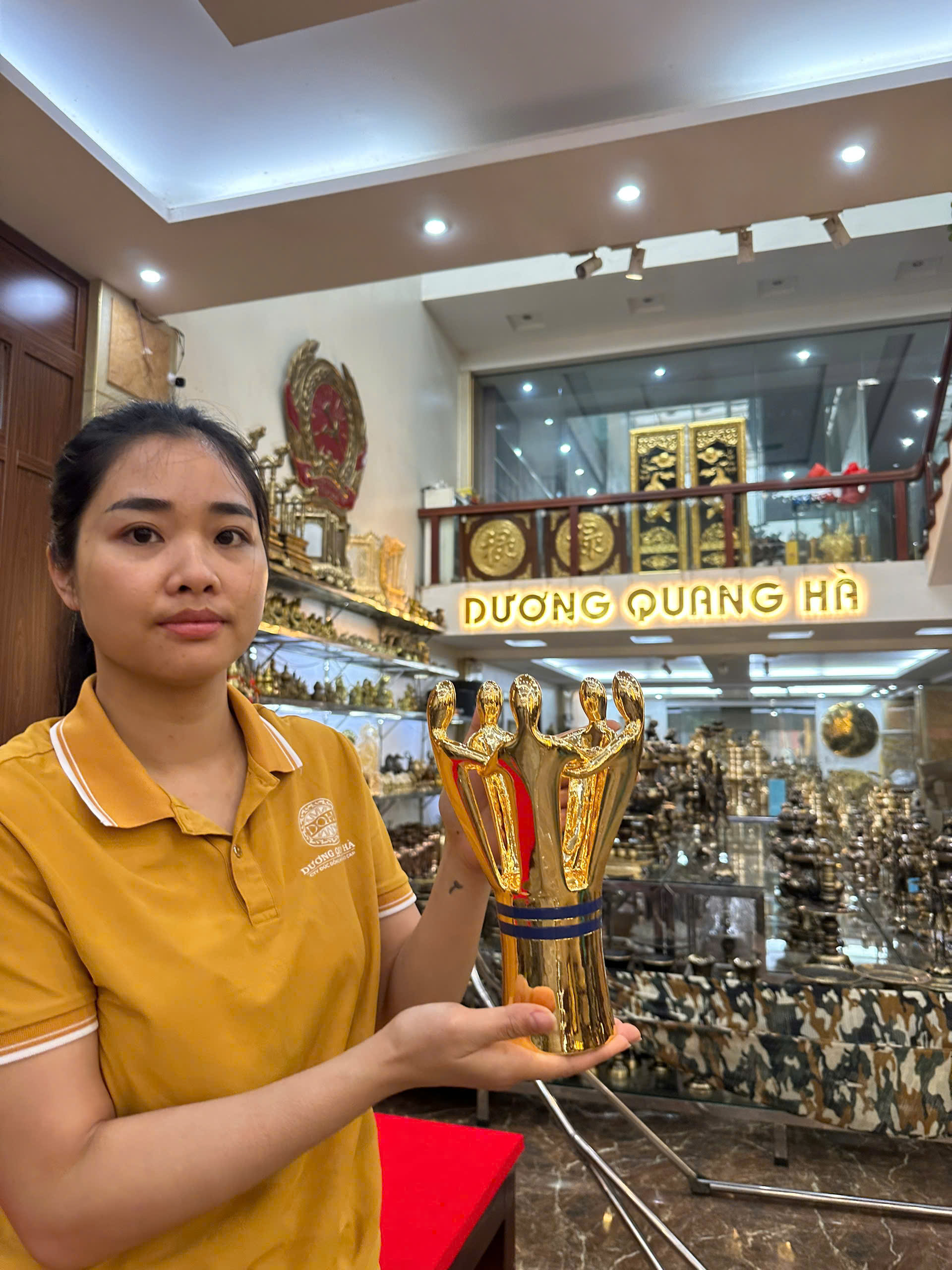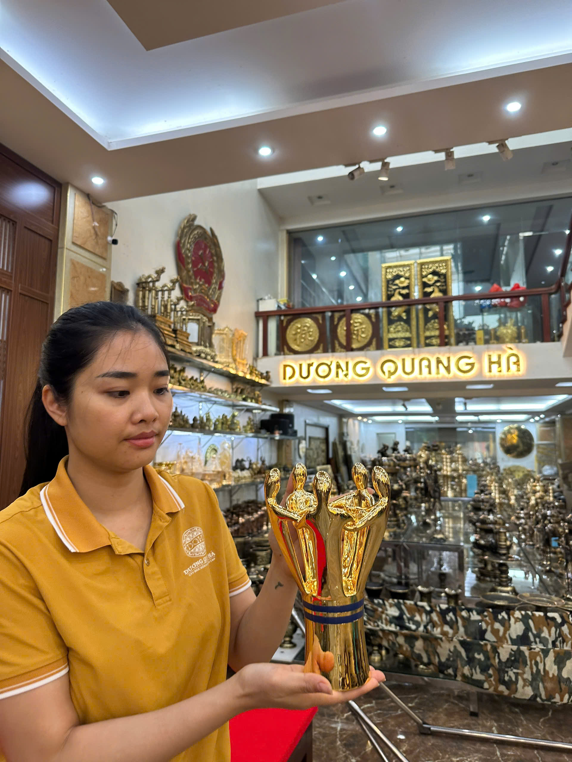 Chúng tôi là cơ sở đúc đồng chuyên đúc các loại cúp lưu niệm bằng đồng tặng khách hàng,cúp vàng doanh nhân việt..tạo mẫu làm khuôn theo ý tưởng ban đầu của khách hàng .Cúp bằng đồng được đúc với phương pháp thủ công truyền thống nặn khuôn bằng đất .Mỗi sản phẩm chúng tôi làm ra rất có mỹ thuật từng đường nét hoa văn trên cúp đồng tinh xảo sắc nét.