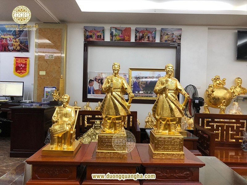 Bên cạnh đó, quá trình đúc tượng cũng được thực hiện bởi những nghệ nhân có tay nghề cao, nhiều kinh nghiệm, đảm bảo chất lượng sản phẩm cuối cùng. Các sản phẩm tượng đồng tại Dương Quang Hà không chỉ đẹp mắt mà còn mang đậm nét nghệ thuật và tinh tế trong từng đường nét, từng chi tiết. Tượng đồng được thiết kế tỉ mỉ, điêu khắc tinh xảo, thể hiện đúng tinh thần và ý nghĩa của từng tác phẩm. Khách hàng có thể yên tâm về tính thẩm mỹ của sản phẩm tượng đồng được đúc tại Dương Quang Hà, chúng sẽ đáp ứng được nhu cầu trang trí hoặc làm quà tặng độc đáo, sang trọng.