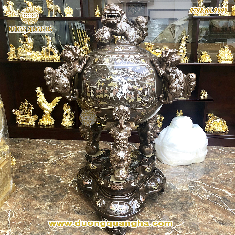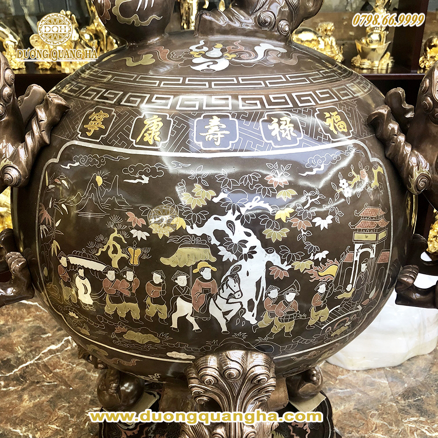 Tóm tắt về sản phẩm: Tất cả sản phẩm được đúc, gia công chế tác, chạm khảm tất cả đều được làm thủ công bằng tay mỗi sản phẩm thực sự là một tác phẩm đồng mỹ nghệ tinh xảo đến mức cao nhất, với những đường nét lưu loát, có giá trị thực sự cao của những nghệ nhân, những người thợ tài hoa từ làng nghề đúc đồng Huyện Ý Yên, Tỉnh Nam Định.