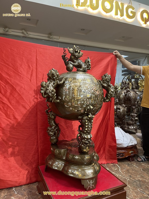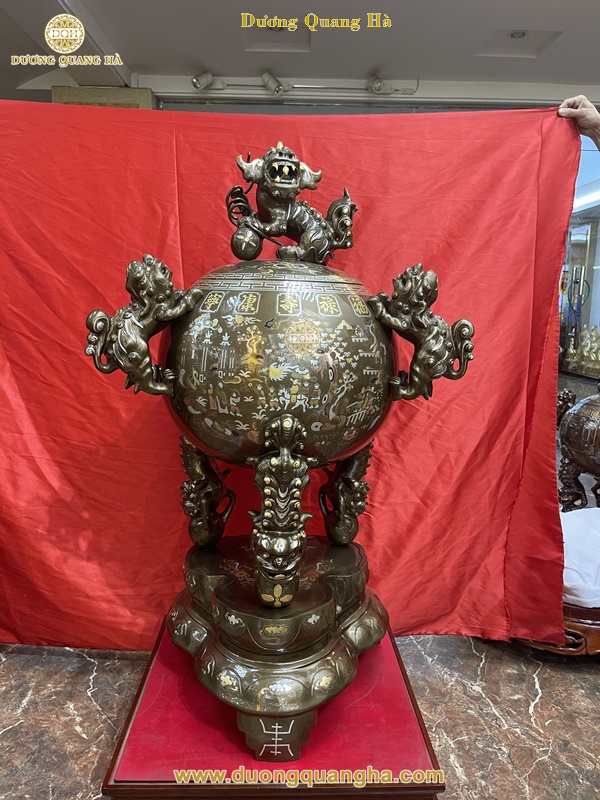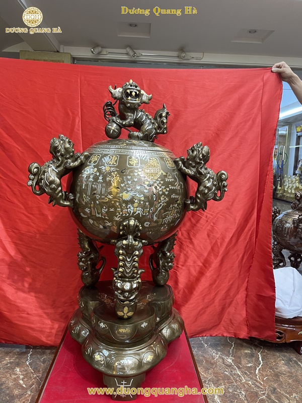 Tóm tắt về sản phẩm: Tất cả sản phẩm được đúc, gia công chế tác, chạm khảm tất cả đều được làm thủ công bằng tay mỗi sản phẩm thực sự là một tác phẩm đồng mỹ nghệ tinh xảo đến mức cao nhất, với những đường nét lưu loát, có giá trị thực sự cao của những nghệ nhân, những người thợ tài hoa từ làng nghề đúc đồng Huyện Ý Yên, Tỉnh Nam Định.
