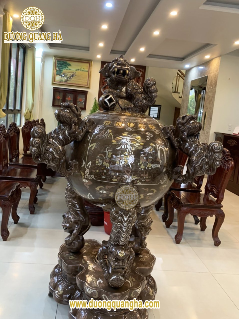 Tên gọi sản phẩm: Đỉnh Thất Lân Vờn Cầu cao 2,6m khảm Ngũ Sắc