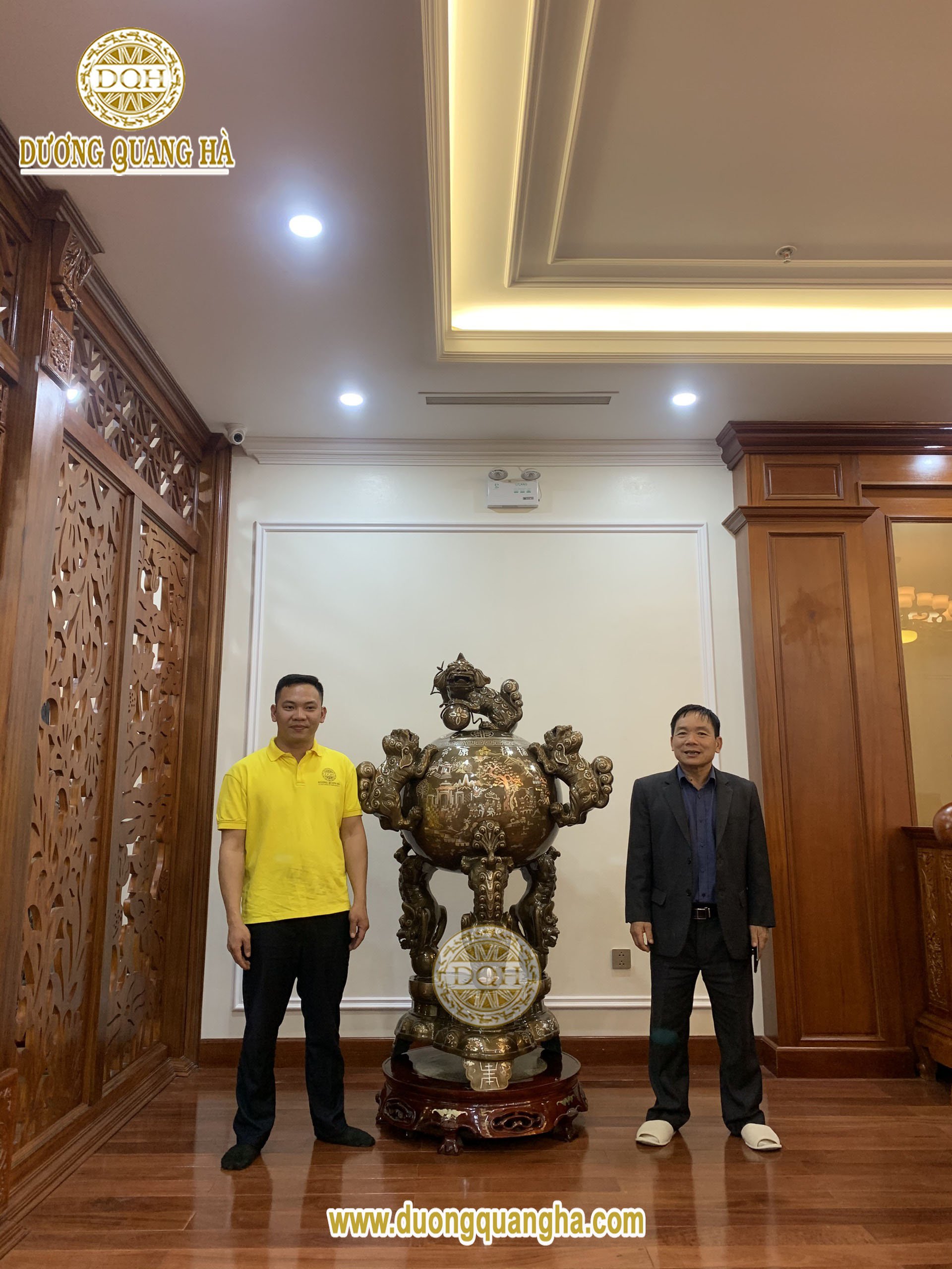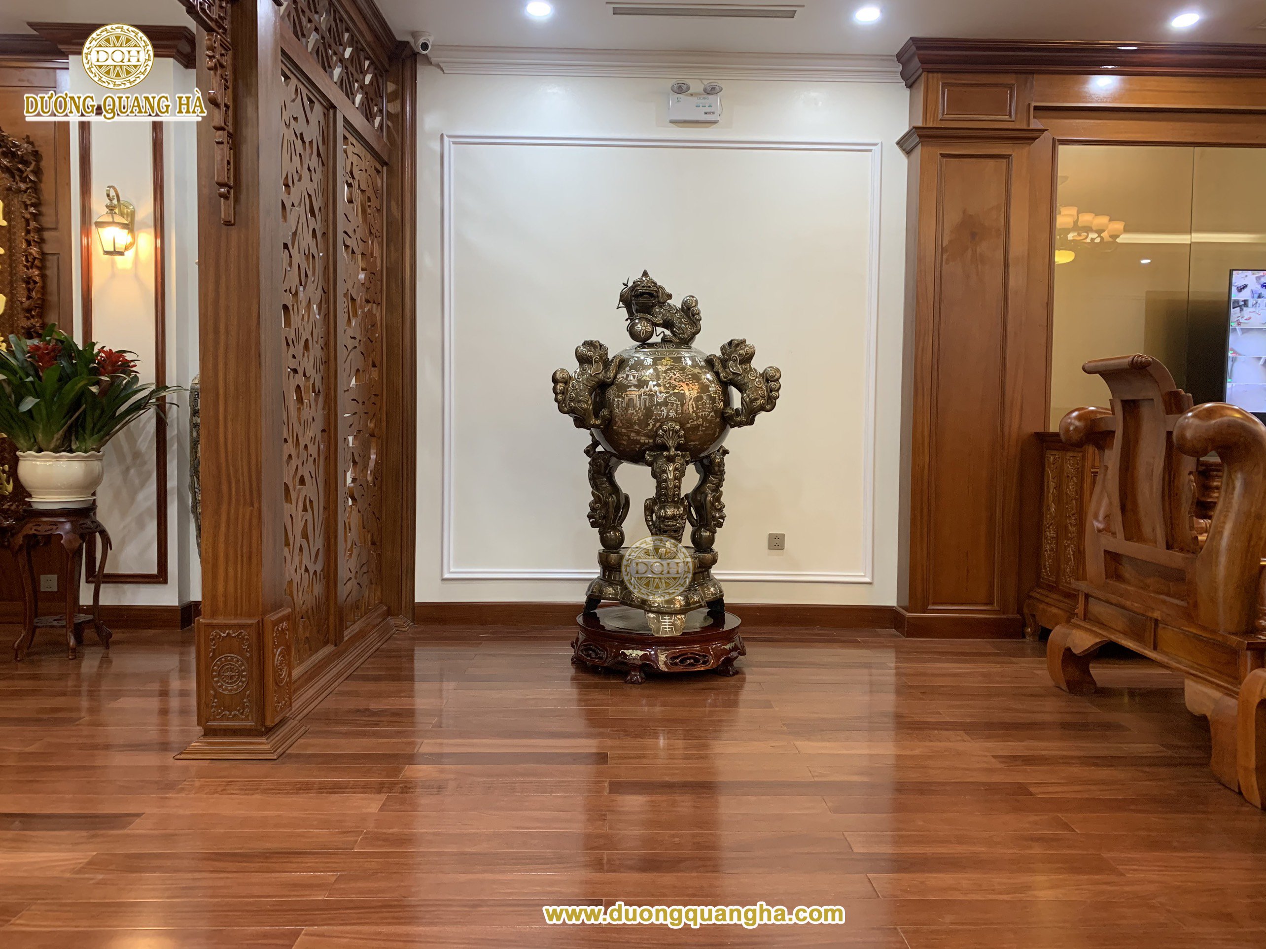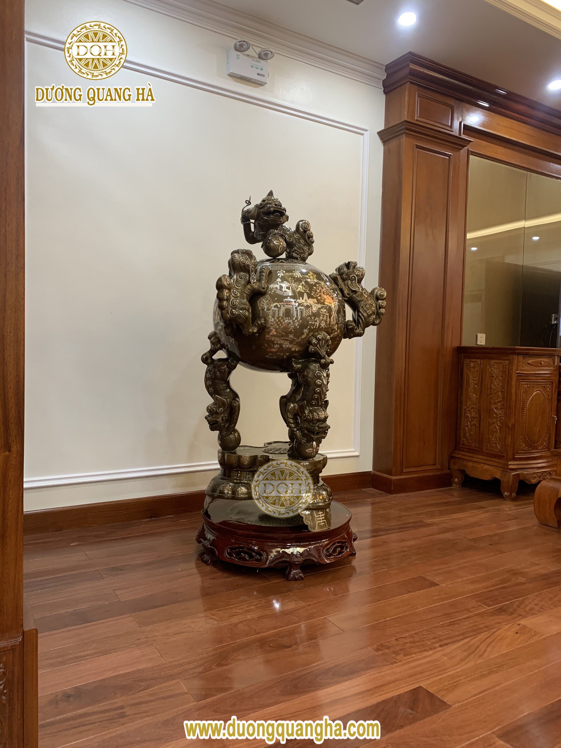 Tên gọi sản phẩm: Đỉnh thất lân vờn cầu khảm tam khí cao 1,5m đã bàn giao cho khách