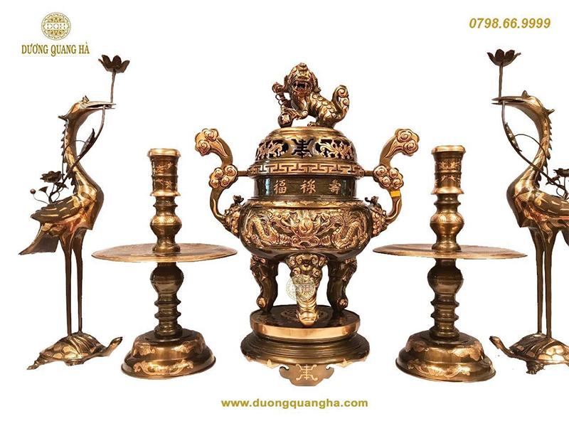Đồ đồng thờ cúng có rất nhiều loại, bộ với những ý nghĩa tâm linh khác nhau. Mặc dù vậy, trong quan niệm của nhiều người dùng, những bộ đồ đồng thờ cúng thường sẽ bao gồm những sản phẩm sau đây.
