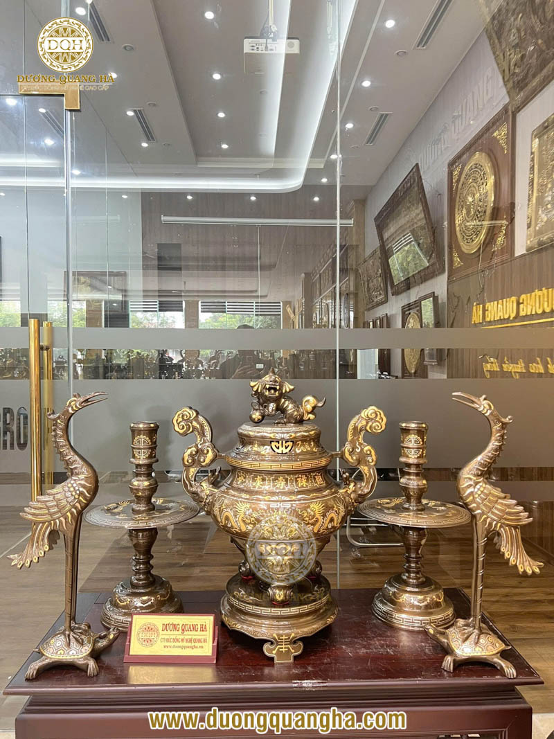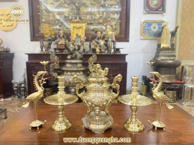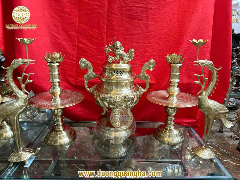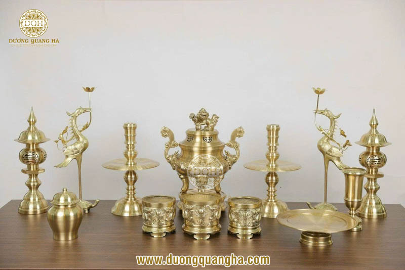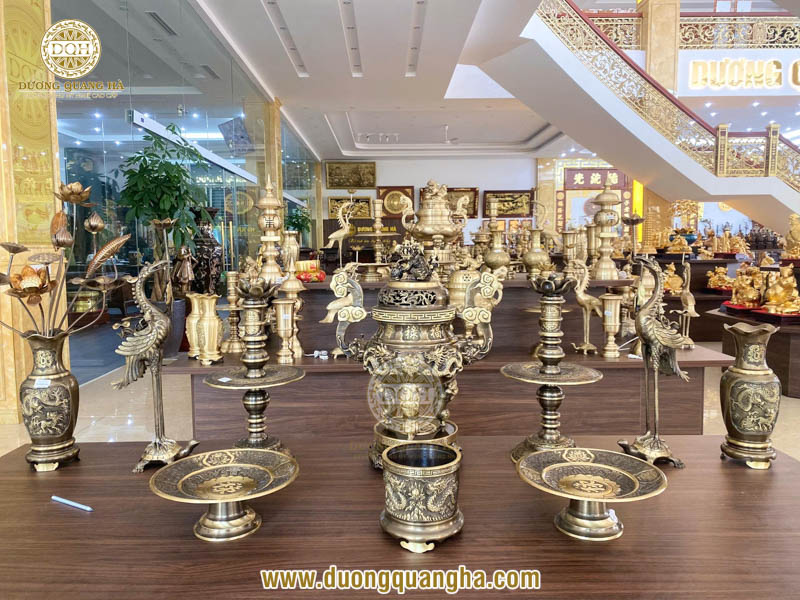 Từ bộ tam sự, ngũ sự, đỉnh đồng, lư hương đến các vật phẩm phong thủy bằng đồng, Đúc đồng Dương Quang Hà mang đến nhiều sự lựa chọn phù hợp cho từng không gian thờ cúng và nhu cầu của khách hàng.