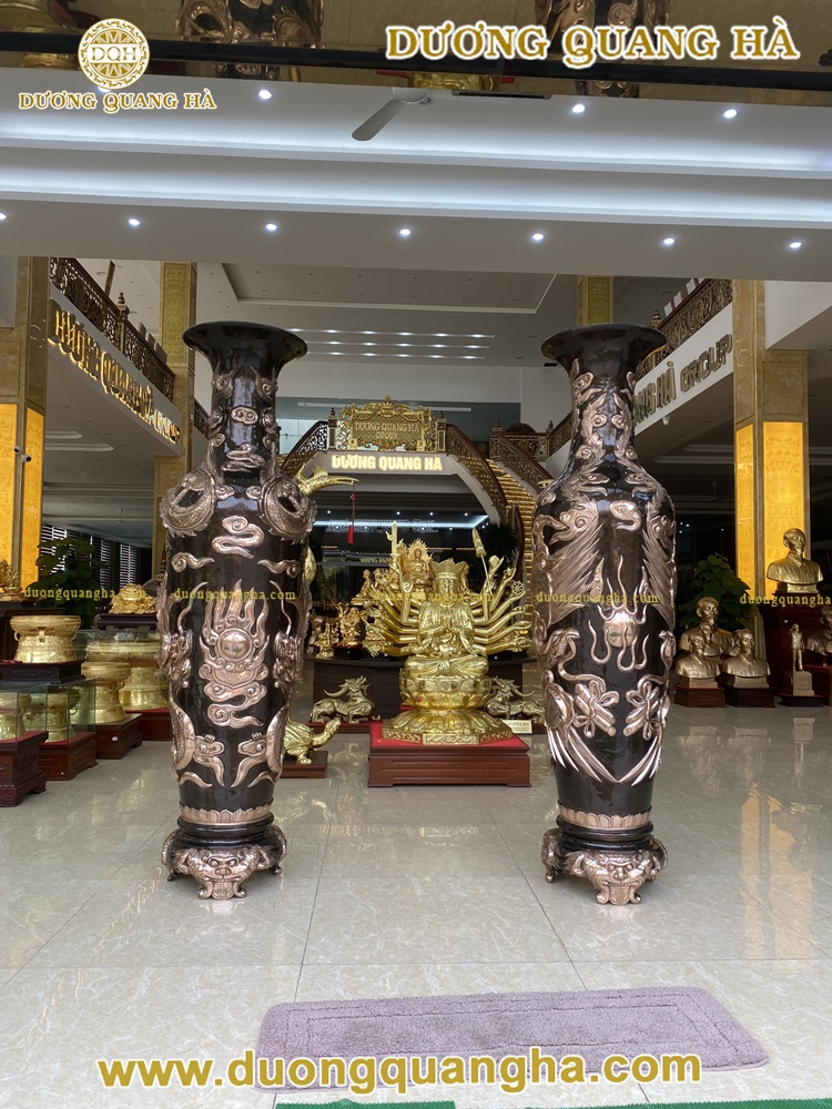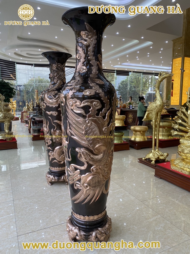Tên gọi sản phẩm : Đôi Lọ Lộc Bình Rồng Phượng Đúc Đồng Đỏ Cao 2m20 Phớt Nỉ