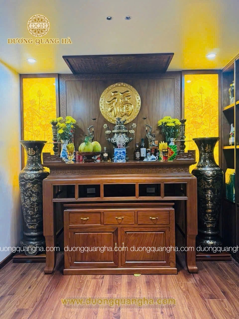 Lọ lục bình đặt trên phòng thờ mang ý nghĩa phong thủy sâu sắc, tượng trưng cho sự thịnh vượng, tài lộc, sung túc và bình an cho gia đình. Hình dáng đặc trưng của lọ lục bình (thân phình to, cổ thắt, miệng loe) giống như một cái phễu, có tác dụng "chiêu tài hút lộc" và "tích lộc", giúp giữ chặt tiền bạc và của cải, ngăn không cho thất thoát ra ngoài.