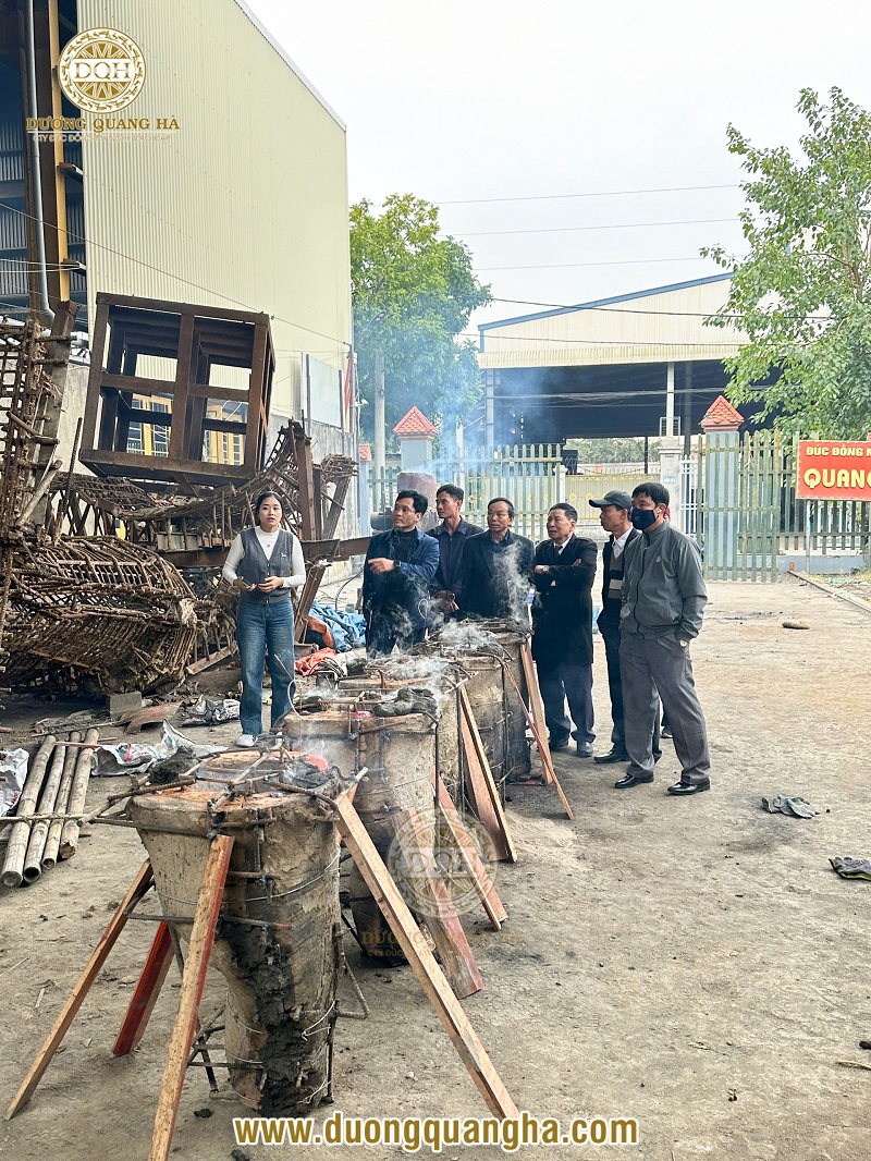 Việc đoàn khách trực tiếp chứng kiến lễ đúc không chỉ là dấu mốc quan trọng của công trình, mà còn là sự tin tưởng, gửi gắm trọn vẹn niềm tin vào tay nghề cũng như uy tín của Đúc đồng Dương Quang Hà. Chúng tôi cam kết mang đến những pho tượng chuẩn thần thái - bền vững với thời gian, xứng đáng là chốn linh thiêng để con cháu đời sau phụng thờ.
