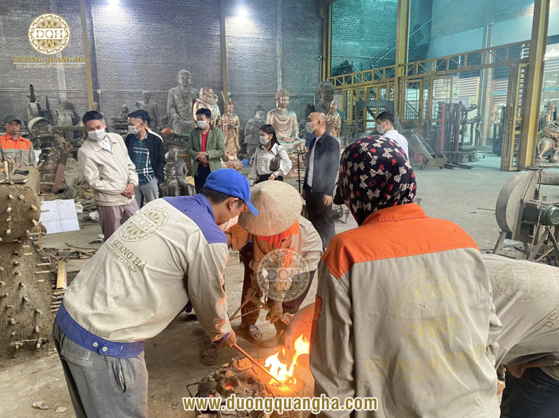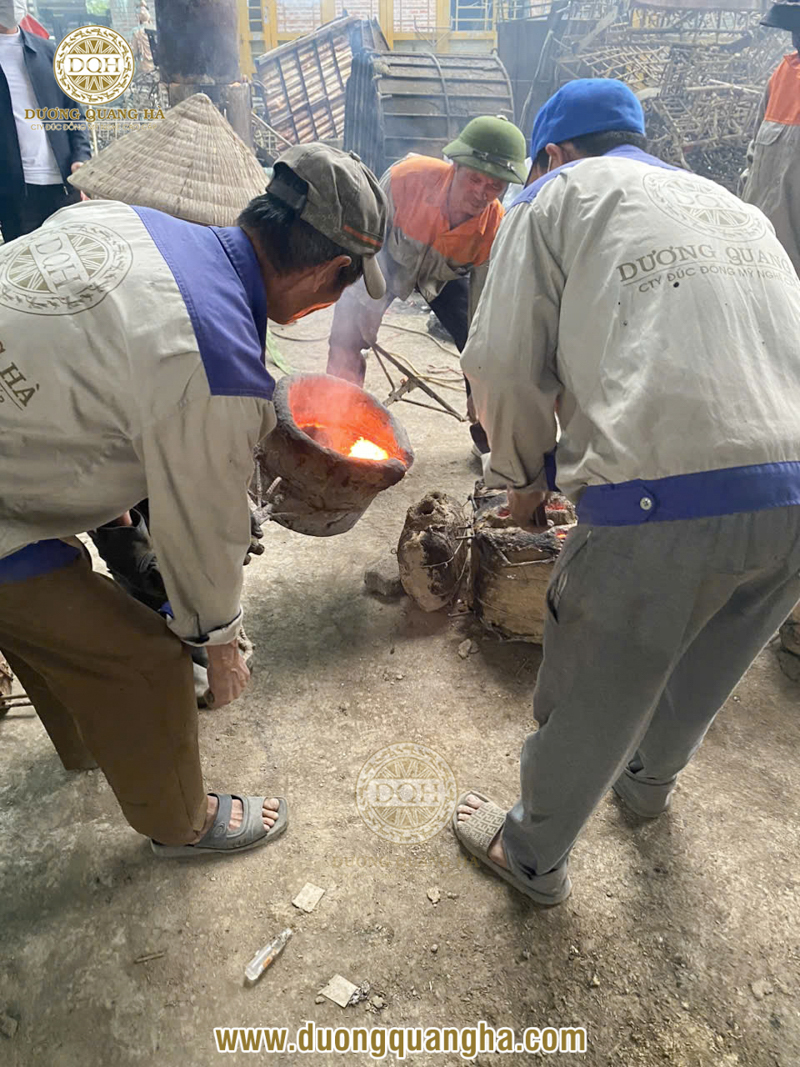 Buổi lễ không chỉ là dịp để khách hàng tận mắt chứng kiến quá trình tạo nên những tác phẩm đồ đồng tinh xảo, mà còn là cơ hội để chúng tôi tôn vinh những giá trị văn hóa truyền thống đã được hun đúc qua bao thế hệ. Từng khối đồng nóng chảy, từng hoa văn được khắc họa là minh chứng sống động cho tâm huyết và kỹ nghệ tài hoa của đội ngũ nghệ nhân tại Đúc đồng Dương Quang Hà.