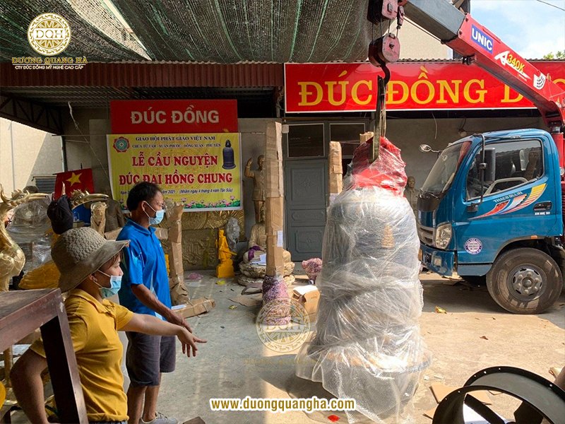 Với dịch vụ giao hàng và lắp đặt tận nơi miễn phí, khách hàng có thể hoàn toàn yên tâm khi đặt đúc chuông đồng tại Đúc đồng Dương Quang Hà. Chúng tôi có đội ngũ nhân viên chuyên nghiệp, tận tình, sẵn sàng hỗ trợ khách hàng trong việc vận chuyển và lắp đặt chuông đồng tại địa điểm yêu cầu. Điều này giúp tiết kiệm thời gian và công sức cho khách hàng, đảm bảo sản phẩm được lắp đặt chính xác và đúng kỹ thuật.